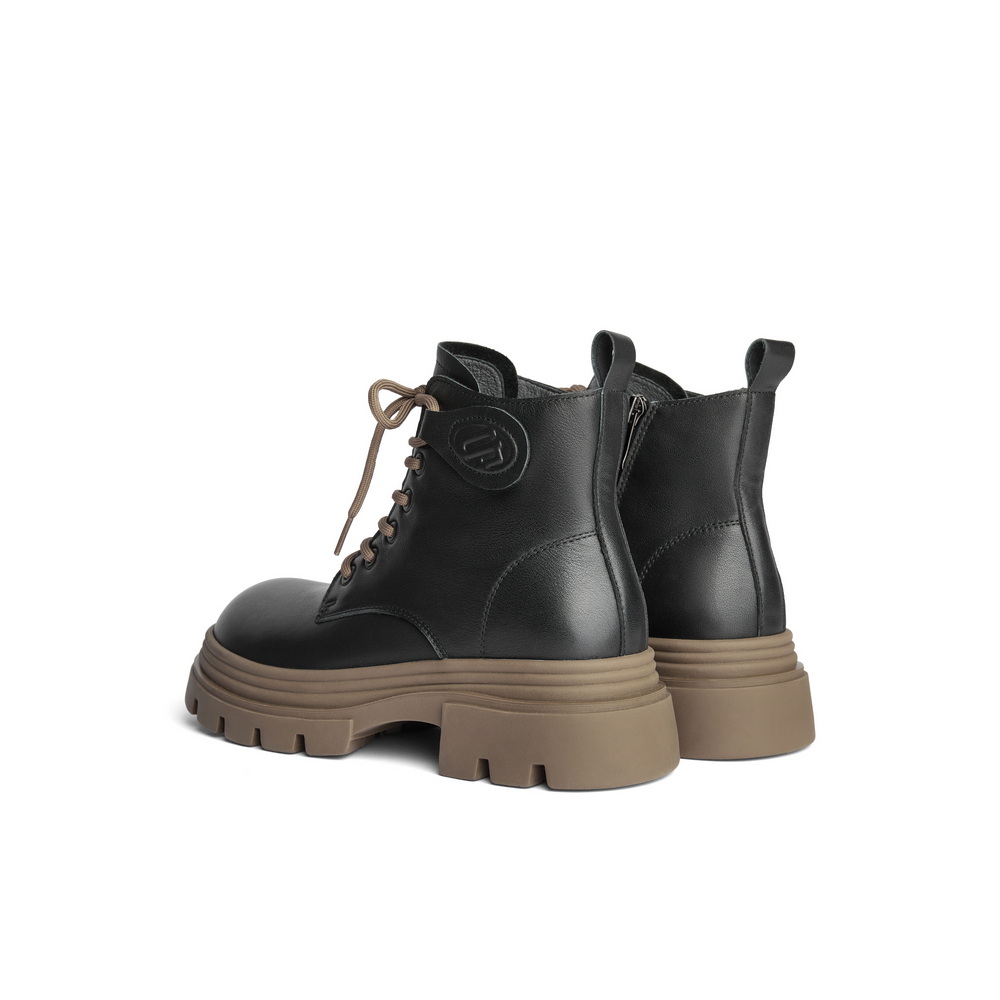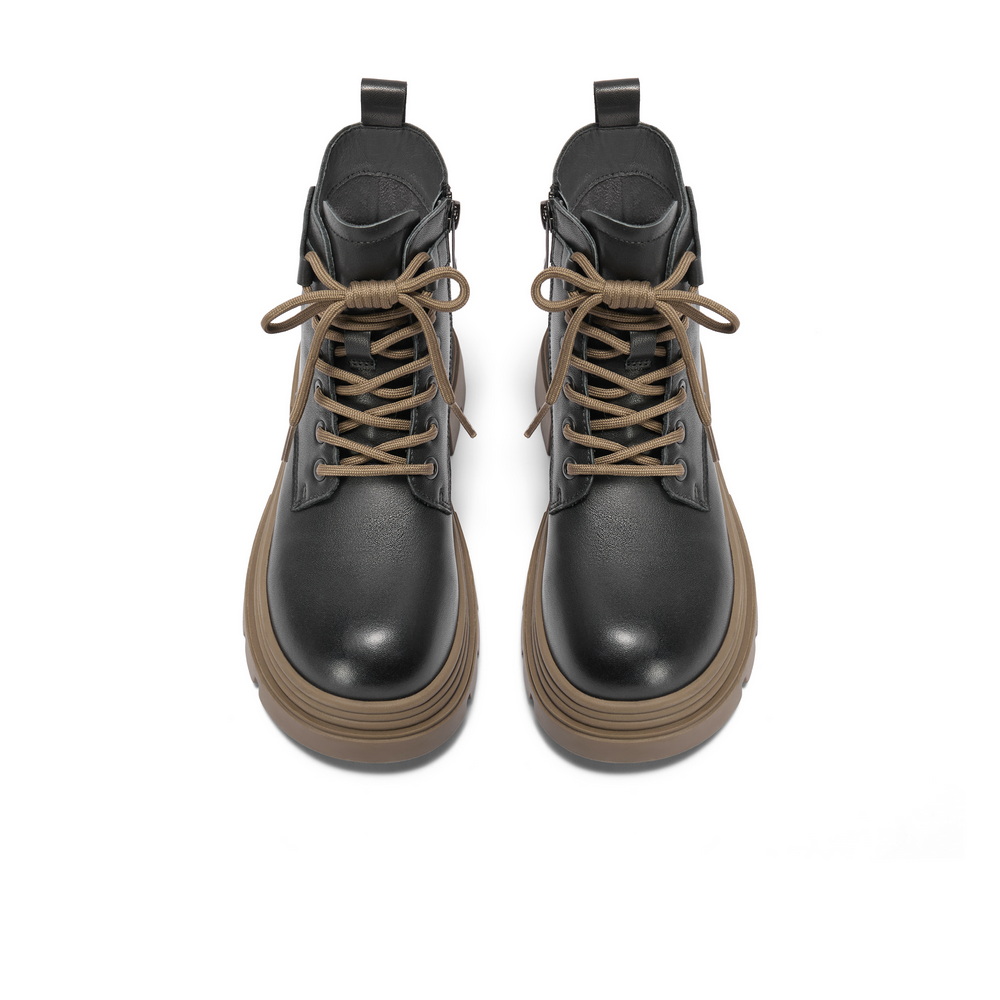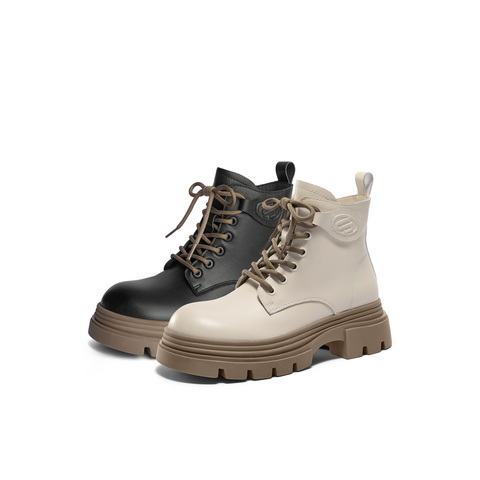 百丽舒适系带马丁靴女2024冬新商场同款真皮短筒靴B9T1DDD4