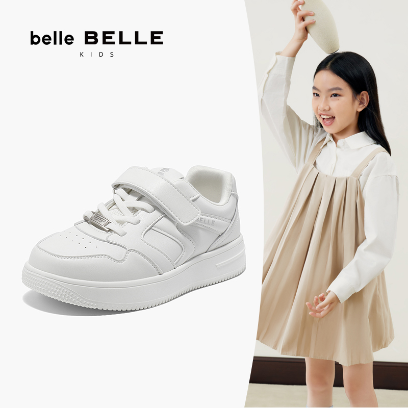 百丽简约大方板鞋2025春新魔术贴休闲童鞋C2508A85