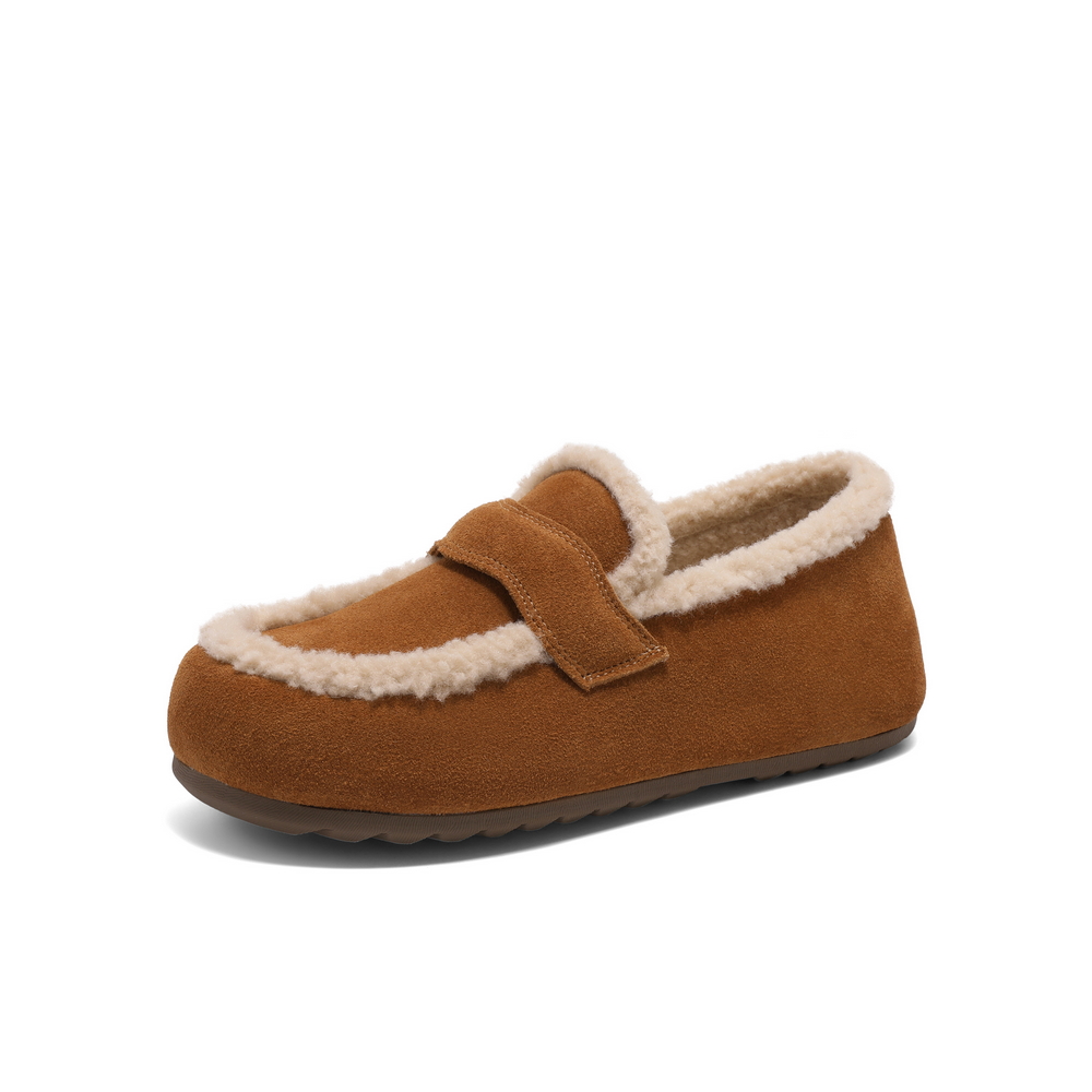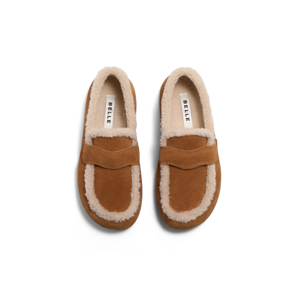 百丽时尚舒适毛毛鞋女2025春新商场同款平底保暖休闲鞋D2F1DAM5