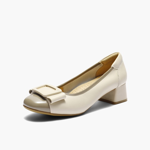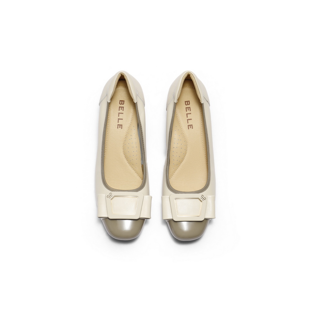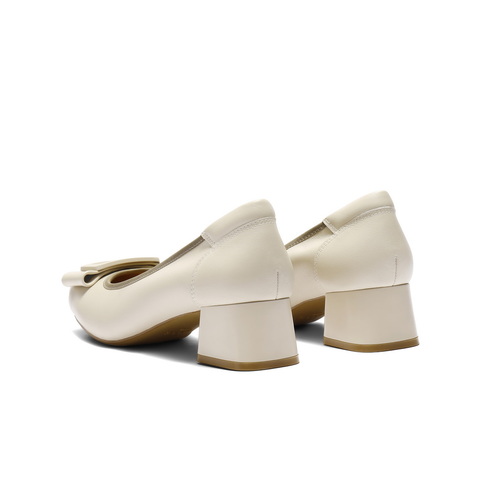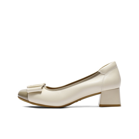 百丽舒适优雅单鞋女2025秋新真皮蝴蝶结方跟鞋D3S1DCQ5