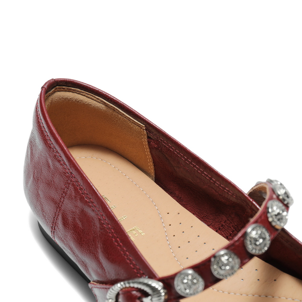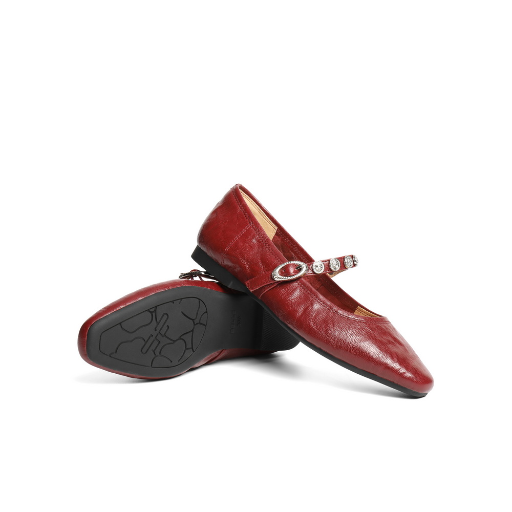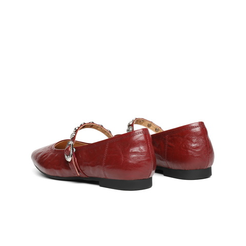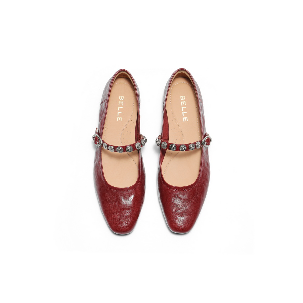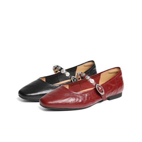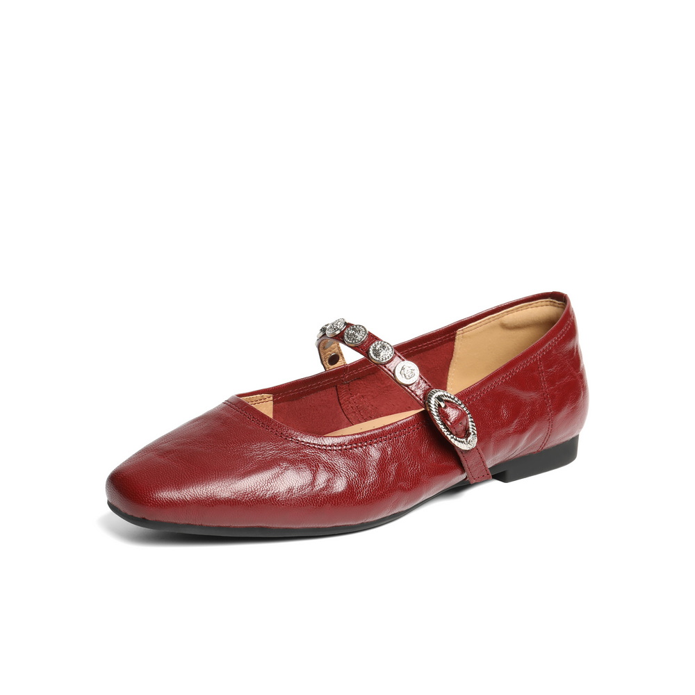 百丽复古褶皱皮玛丽珍鞋女2025秋新商场同款真皮软底单鞋D9V1DCQ5