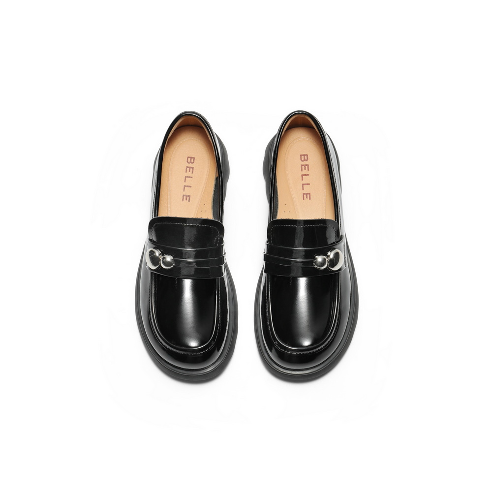 百丽质感抓皱乐福鞋女2025秋新商场同款真皮jk乐福鞋E1G1DCA5