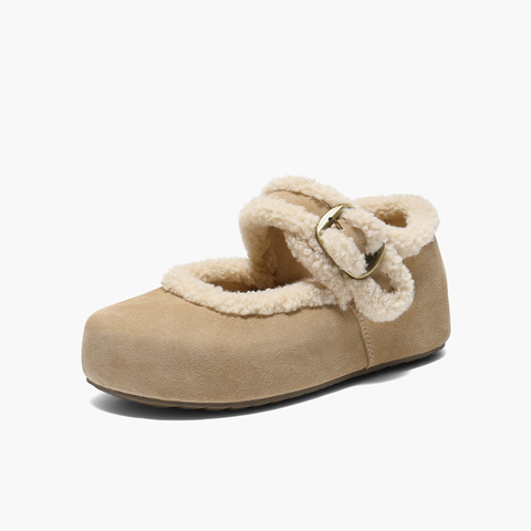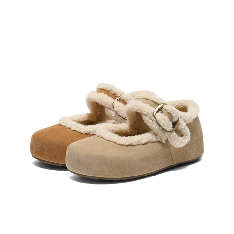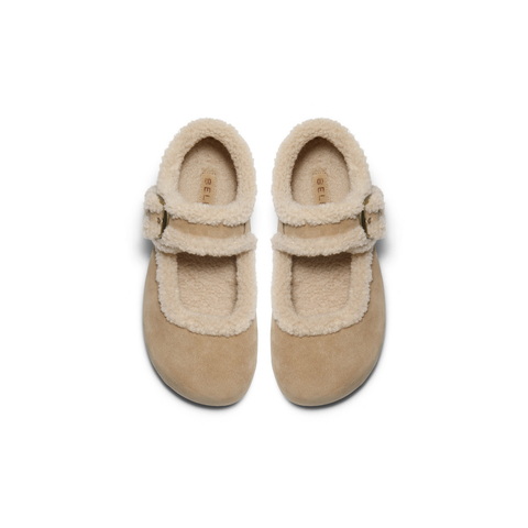 百丽复古毛边勃肯鞋女2025冬新厚底增高加毛玛丽珍鞋E1K1DDM5