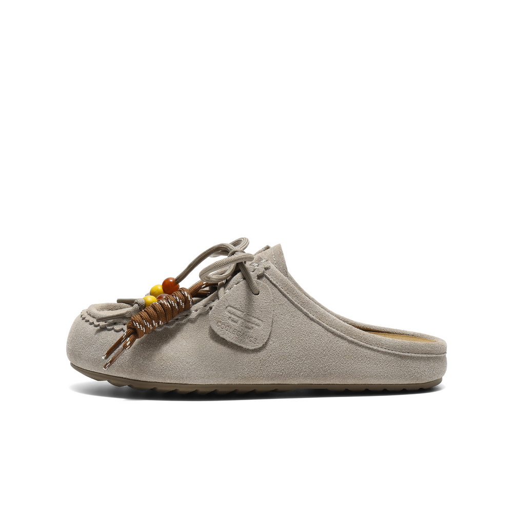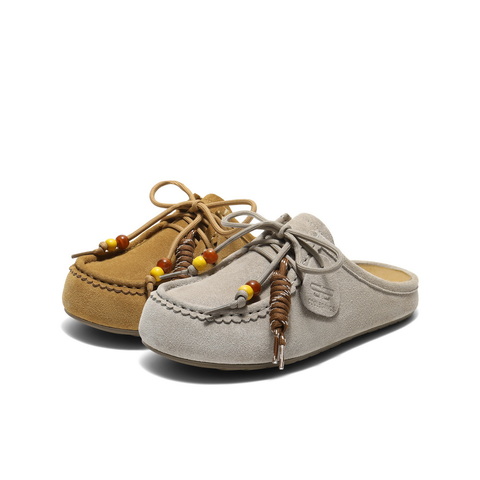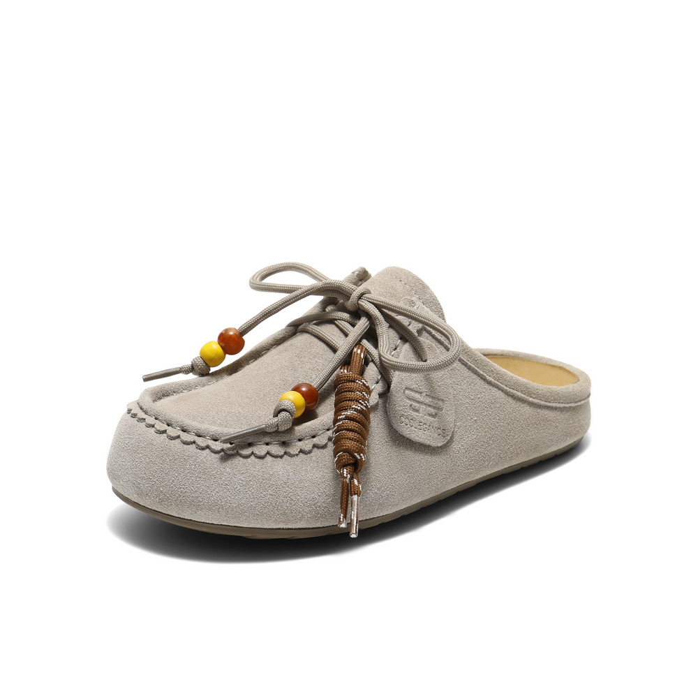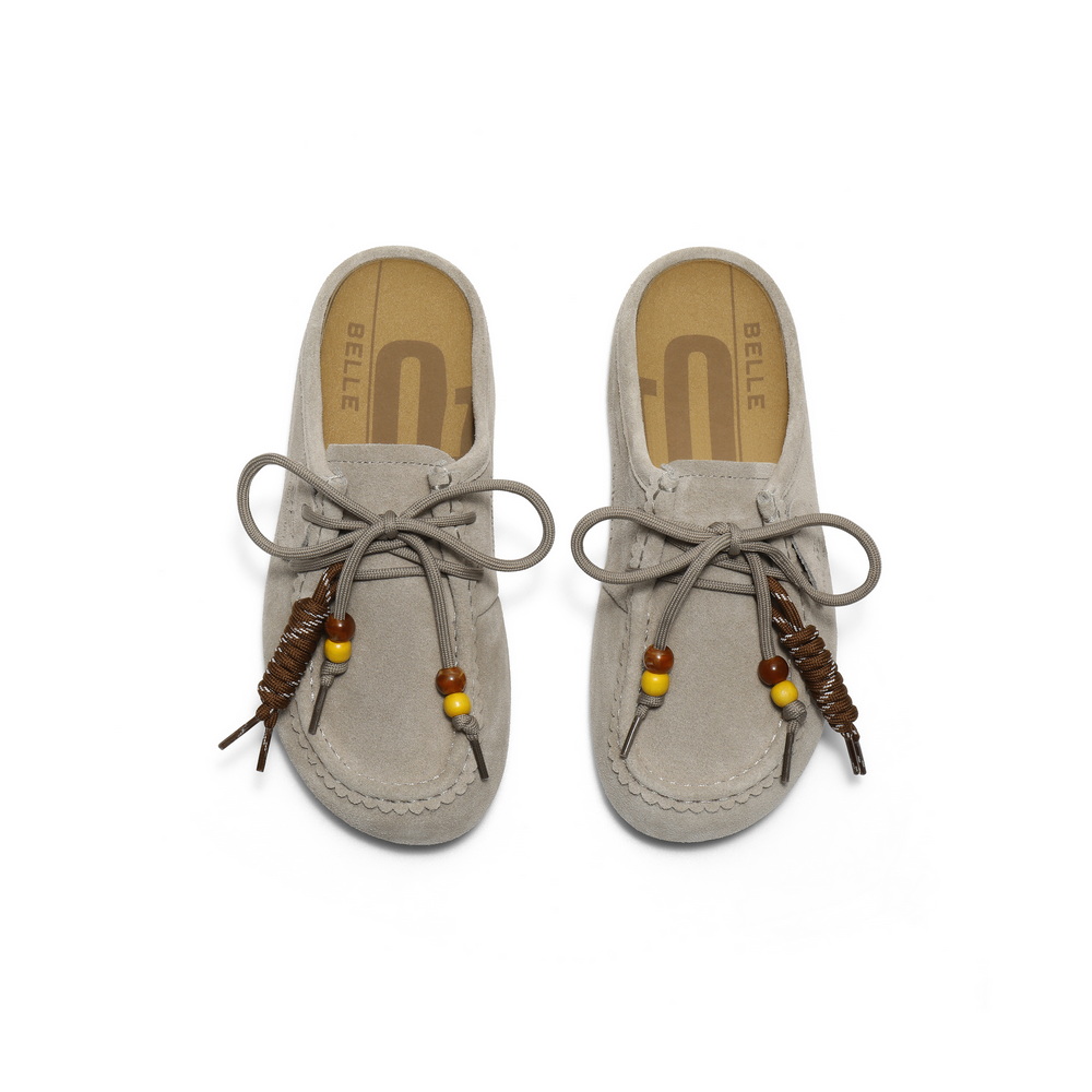 百丽复古绒面勃肯鞋女2025秋新可爱串珠袋鼠鞋半拖E1L1DCH5
