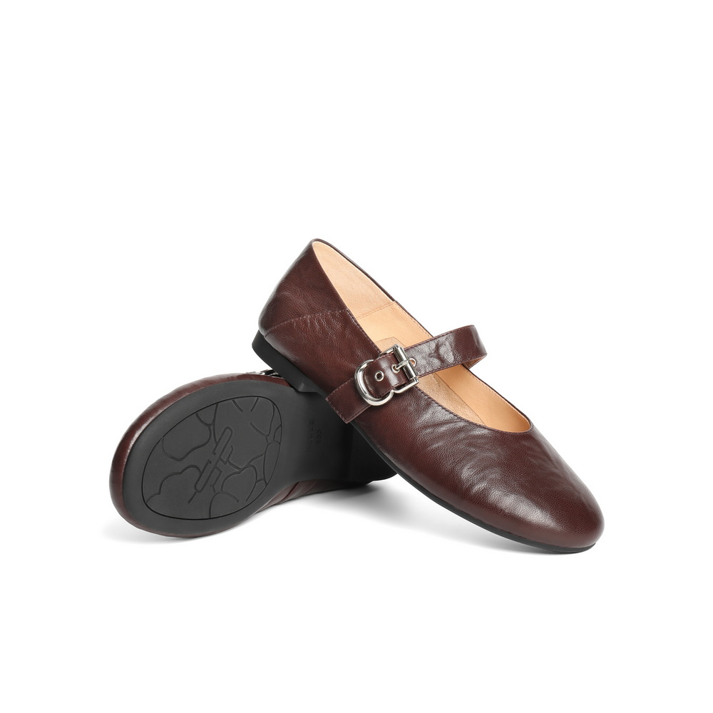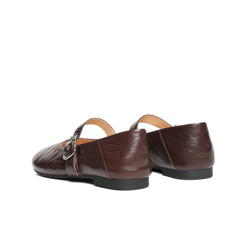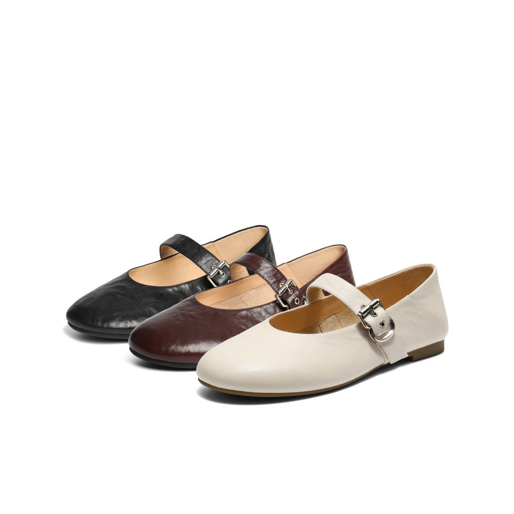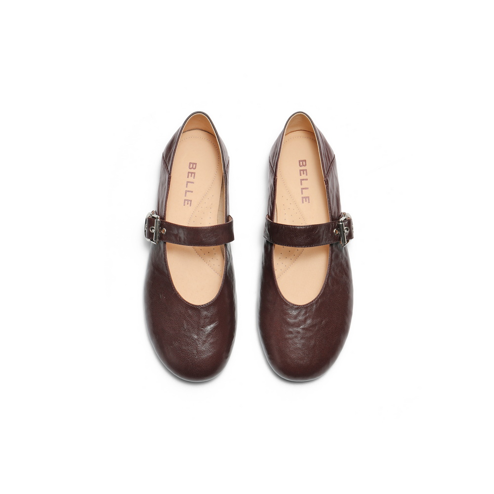 百丽复古褶皱面玛丽珍鞋女2025秋新商场同款真皮舒适单鞋E3U1DCQ5