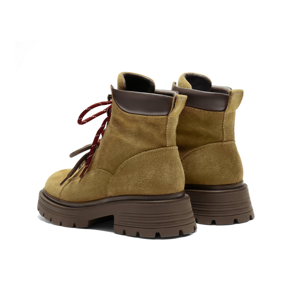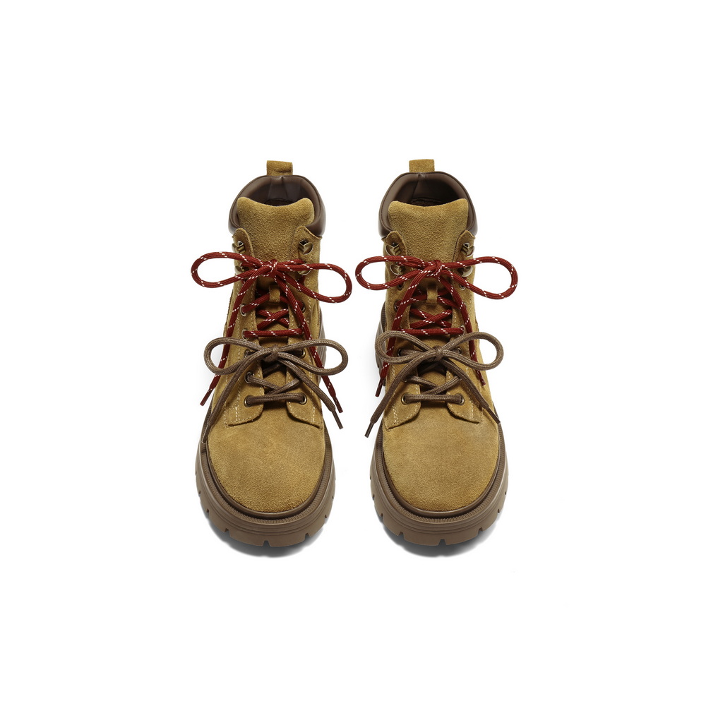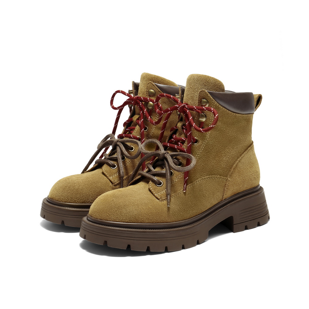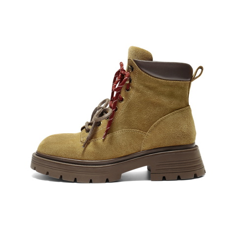 百丽双鞋带工装靴女2025冬新商场同款粗跟增高休闲短靴E4W2DDD5
