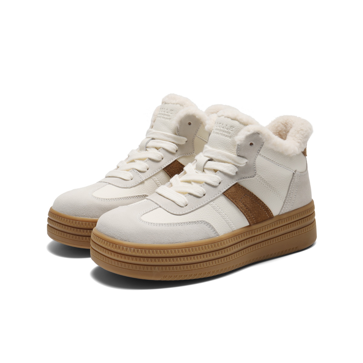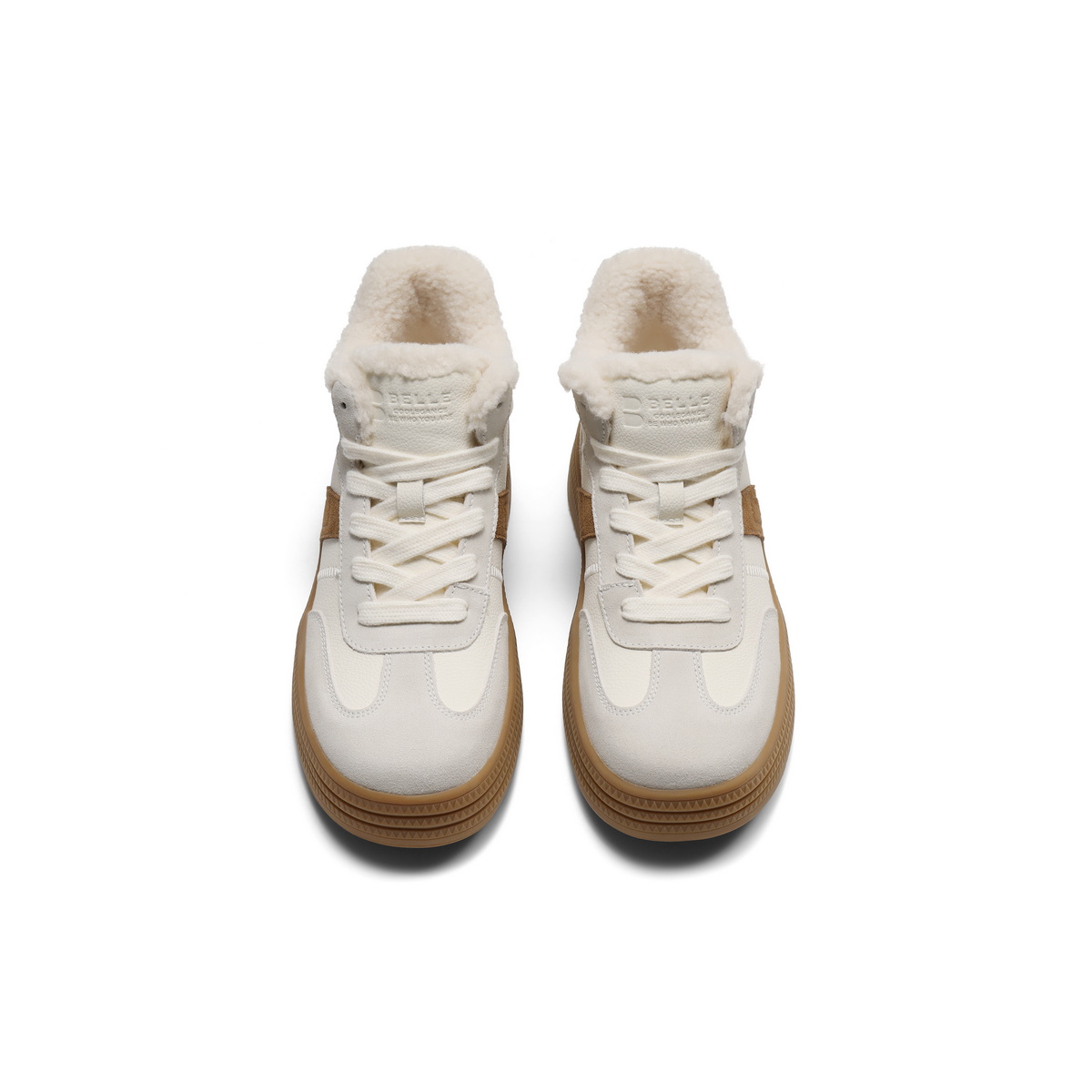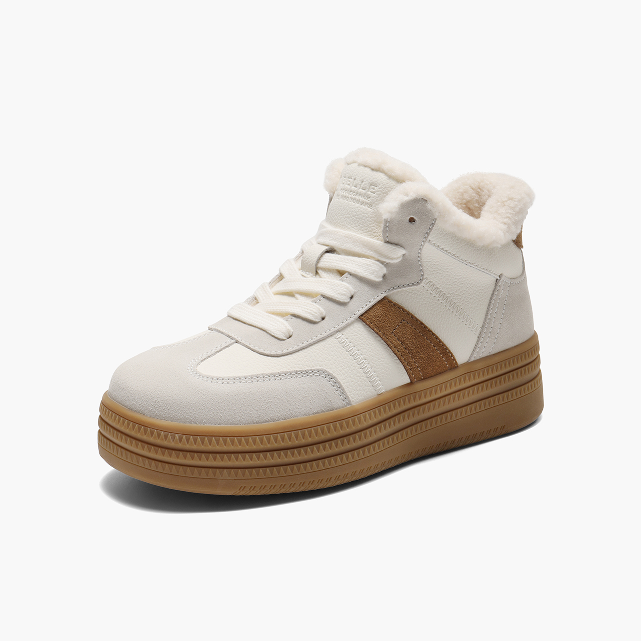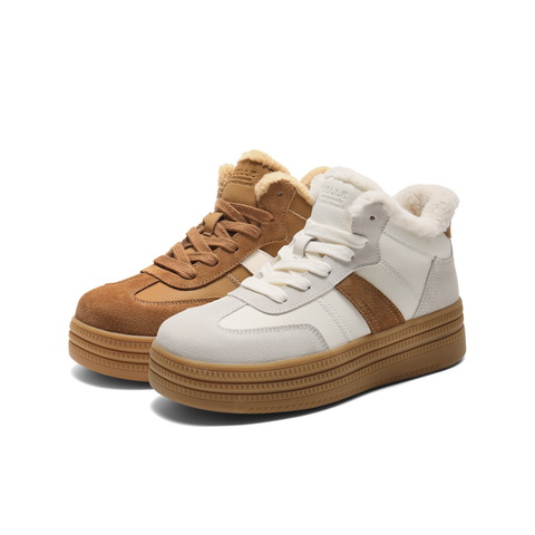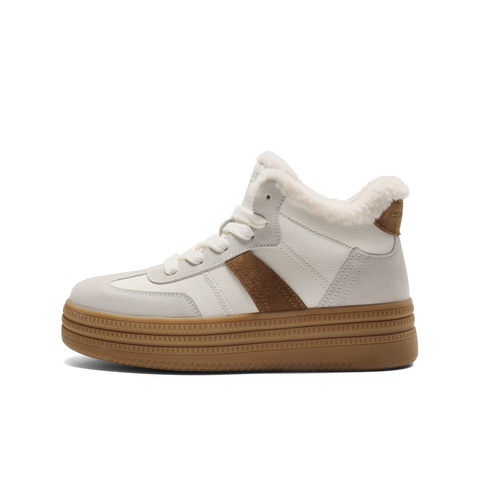 百丽加绒保暖高帮板鞋女2025冬新商场同款厚底增高休闲鞋E5T1DDD5