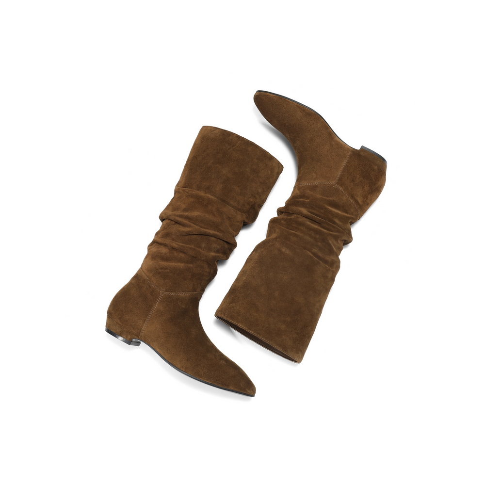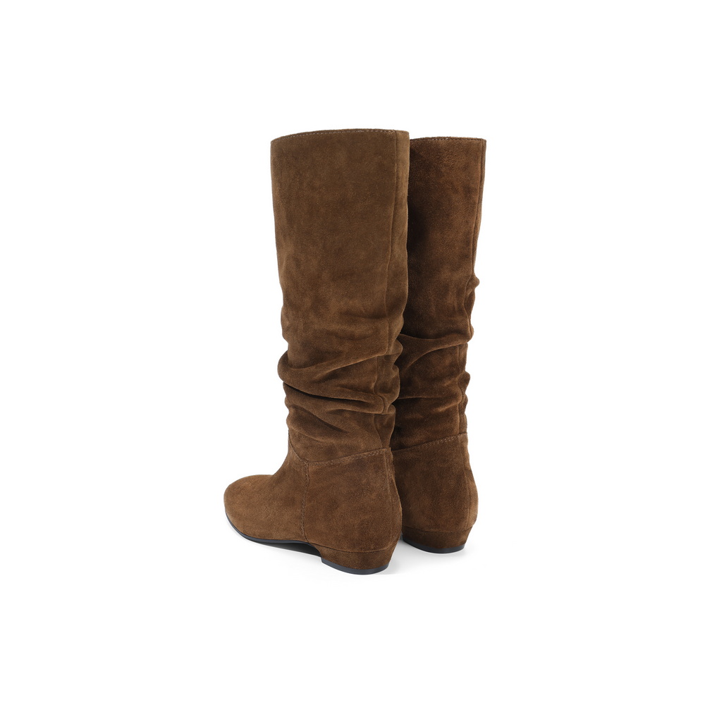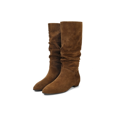 百丽复古绒面西部靴女2025冬新商场同款高筒堆堆长靴E5Z1DDG5