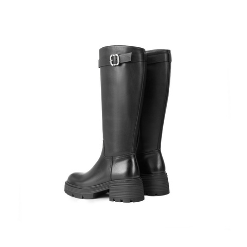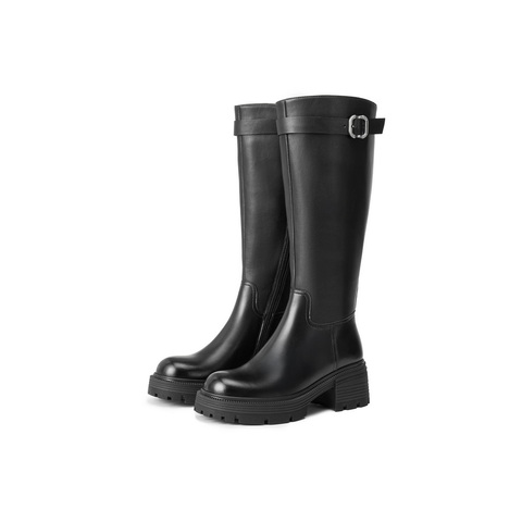 百丽复古时尚骑士靴女2025冬新商场同款真皮厚底高筒靴E6A1DDG5