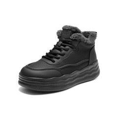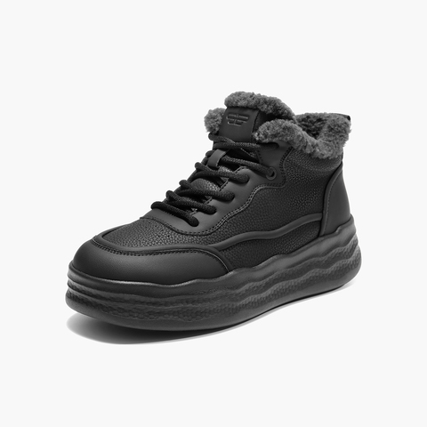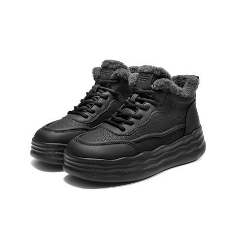 百丽波浪厚底高帮板鞋女2025冬新商场同款加绒保暖休闲鞋E6H1DDD5