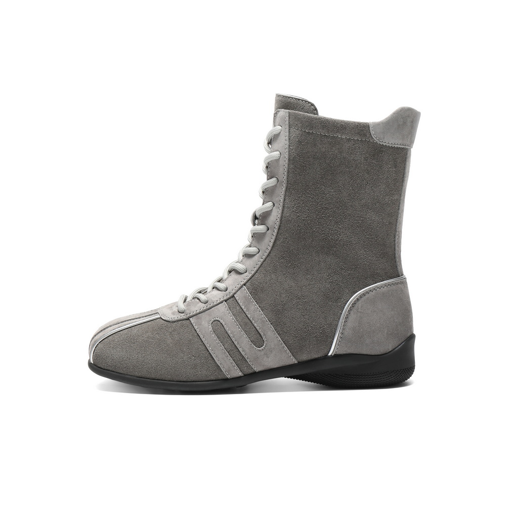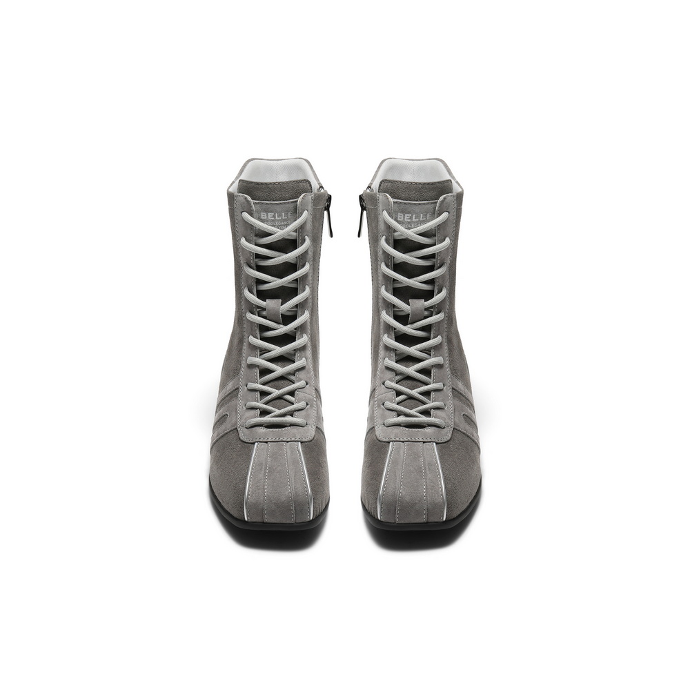 百丽时髦撞色休闲靴女2025冬新商场同款舒适薄底拳击靴E6P1DDZ5