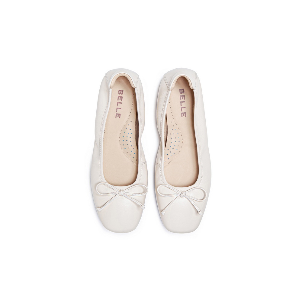 百丽气质简约平底单鞋女2025秋新商场同款真皮通勤单鞋E6Z1DCQ5
