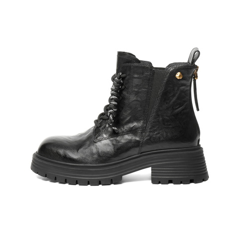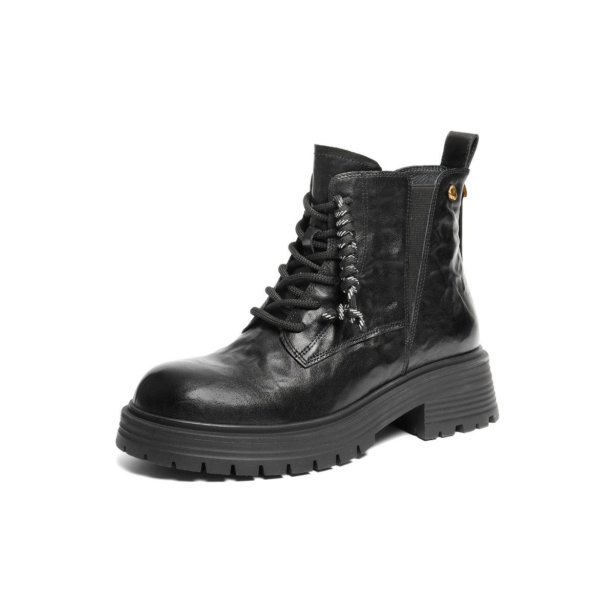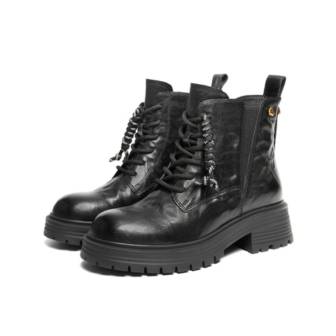 百丽复古抓皱马丁靴女2025冬新商场同款真皮休闲短靴E8D1DDD5