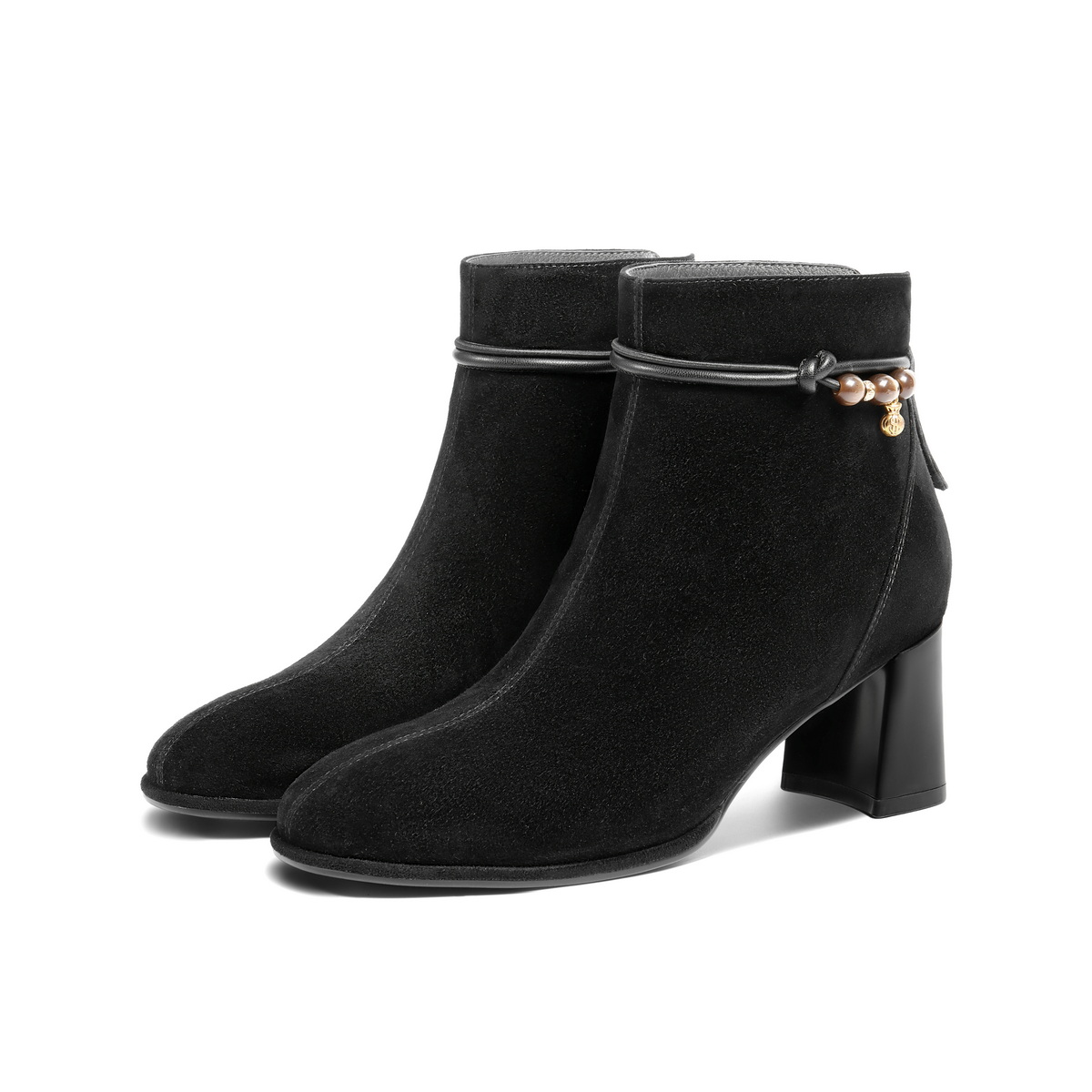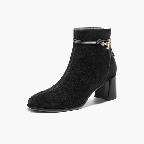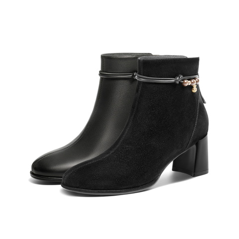百丽简约优雅时装靴女2025冬新商场同款真皮粗跟气质短靴E8K1DDD5