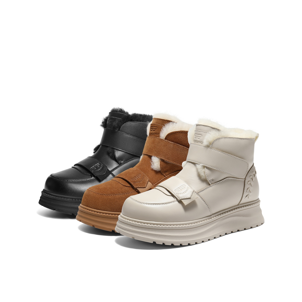 百丽厚底增高雪地靴女2025冬新商场同款保暖魔术贴东北靴E8R1DDD5