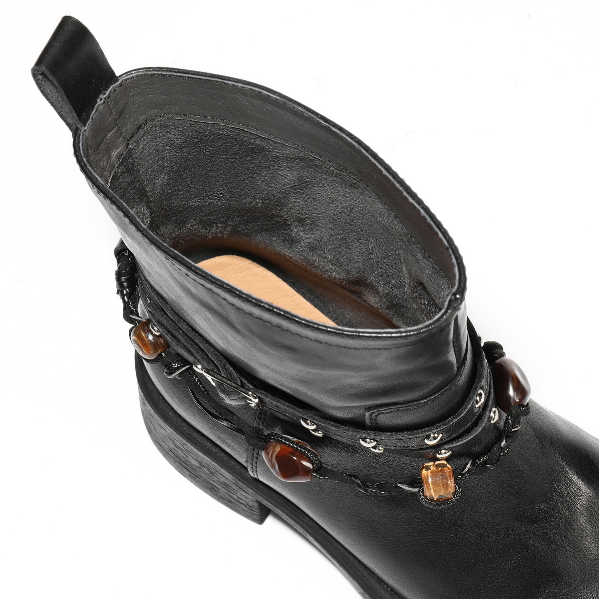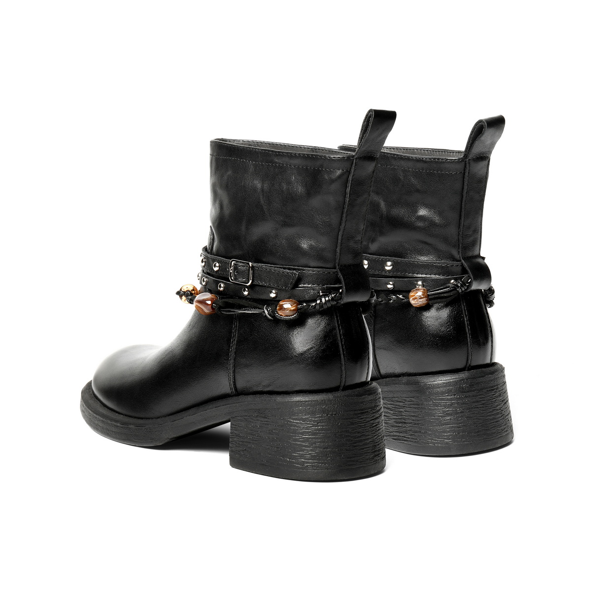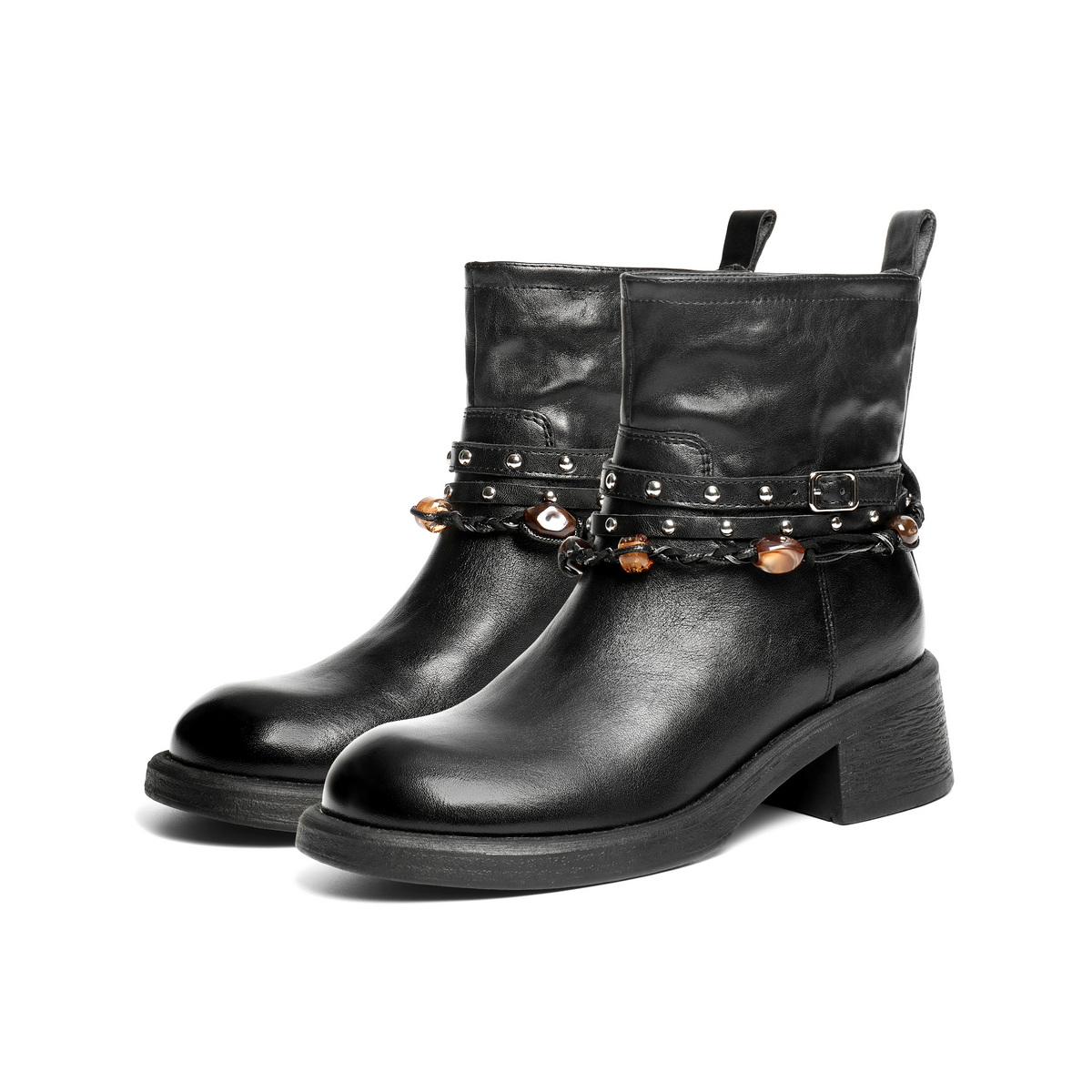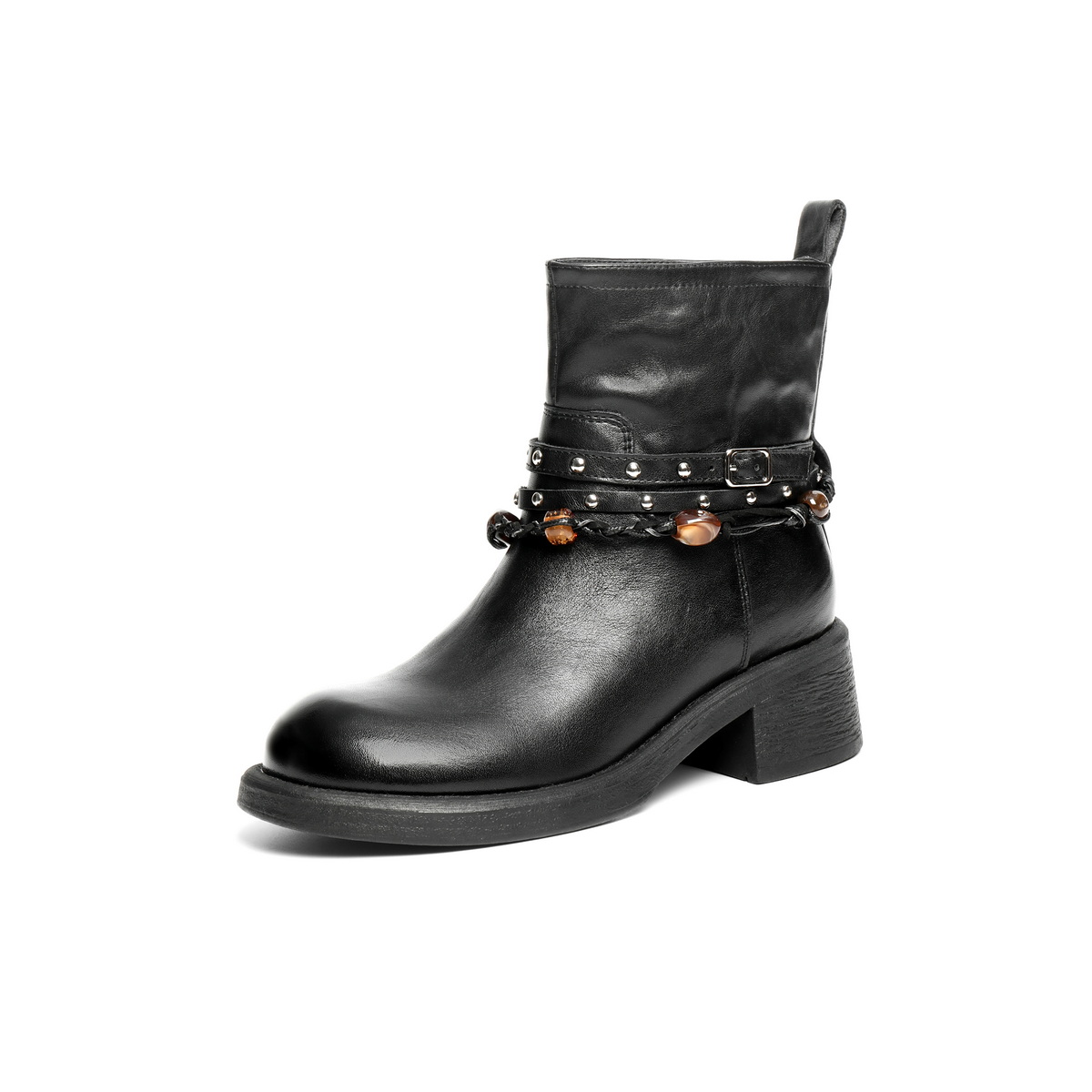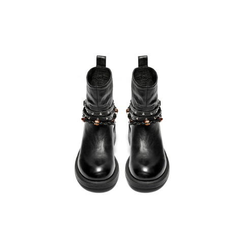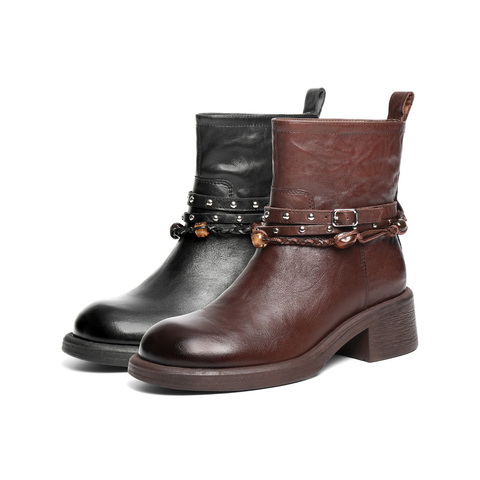 百丽民族风串珠时装靴女2025冬新商场同款真皮厚底短靴F2L1DDD5