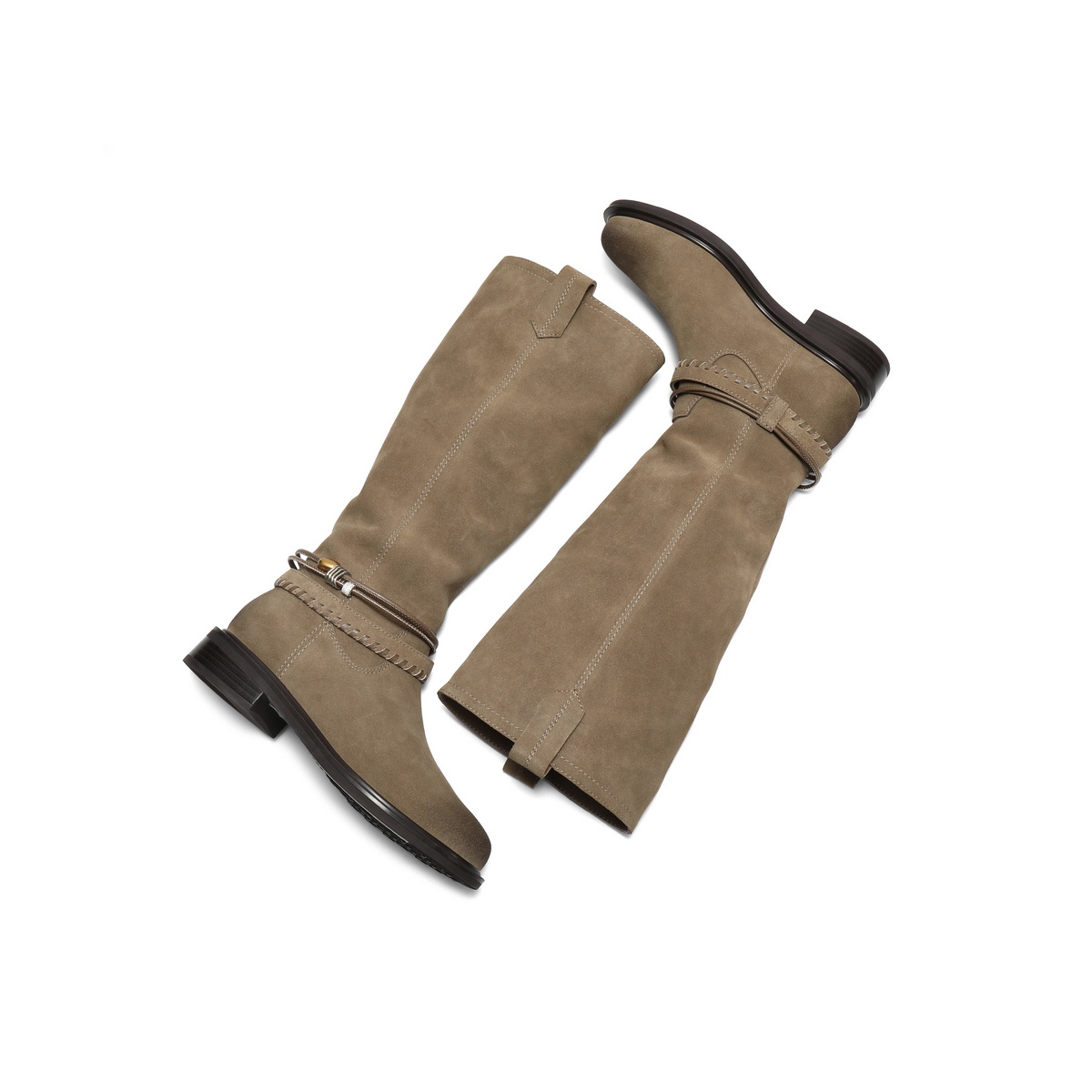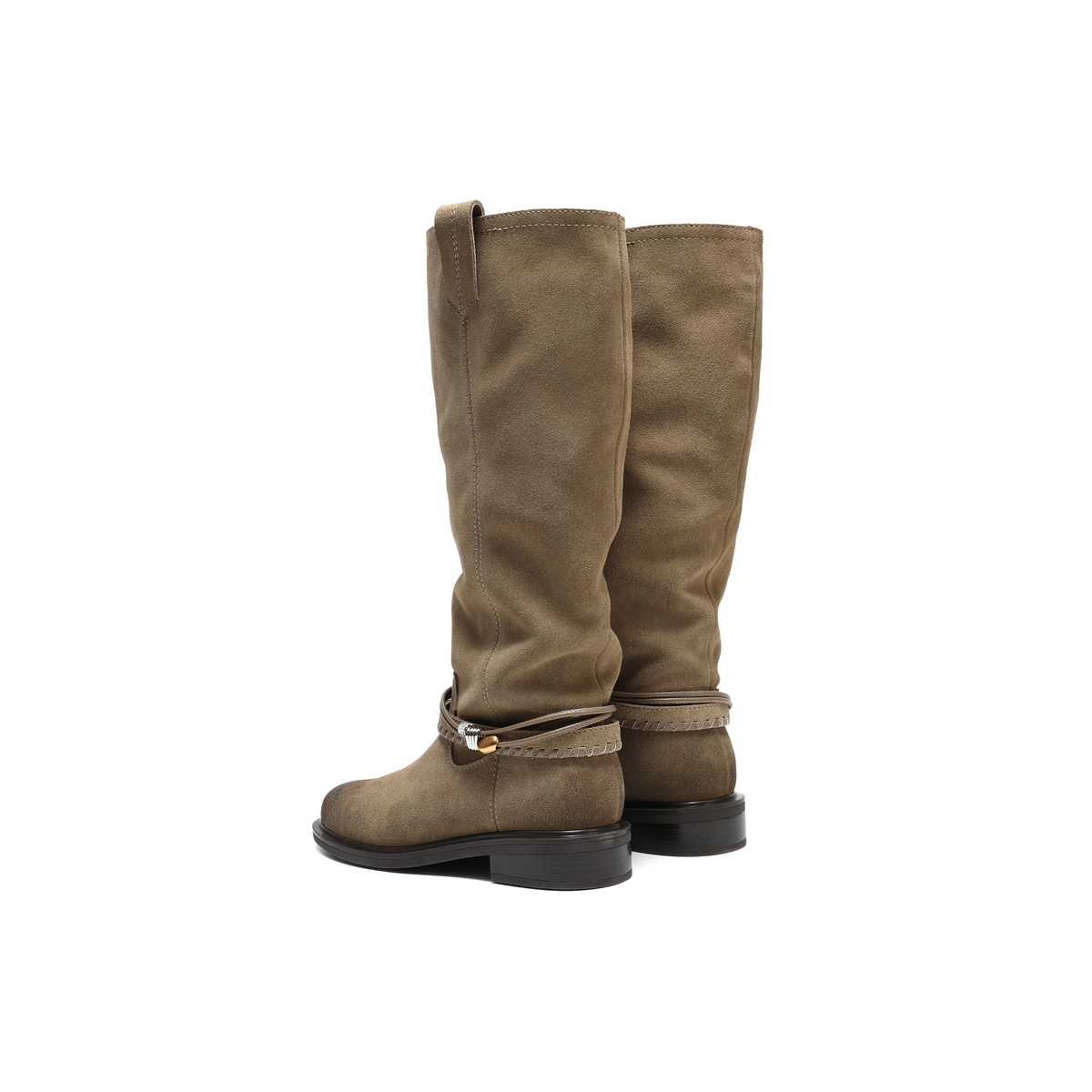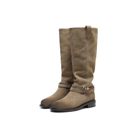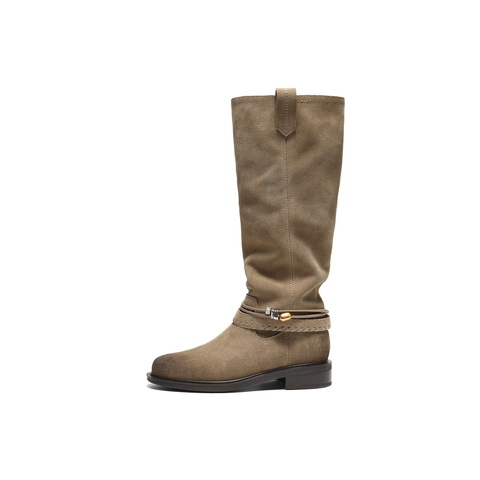 百丽复擦色绒面西部靴女2025冬新商场同款宽筒围高筒靴F2S1DDG5