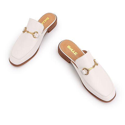 BELLE/百丽马衔扣穆勒拖夏商场同款牛皮革女皮凉鞋T9E1DBH9