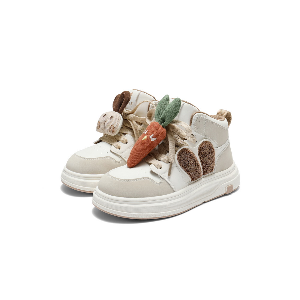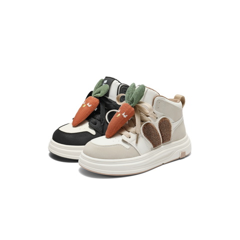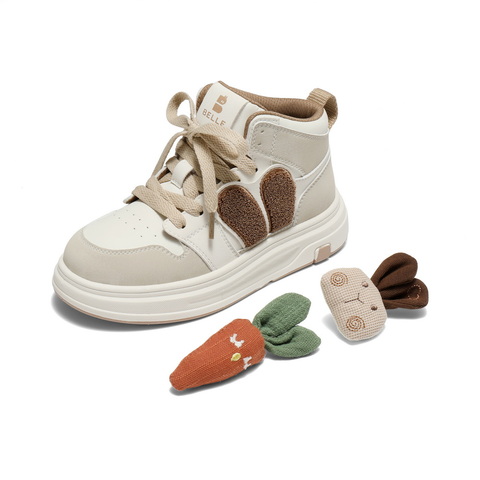 百丽撞色高帮板鞋女童2025冬新商场同款卡通饰扣休闲鞋V5118D85