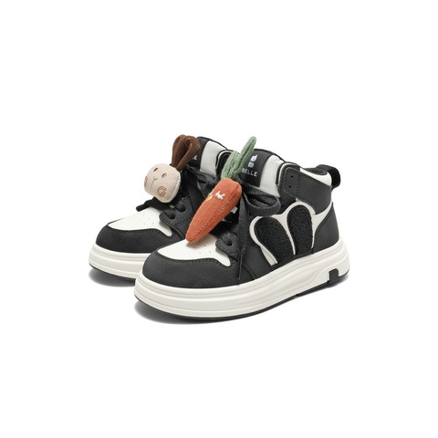 百丽撞色高帮板鞋女童2025冬新商场同款卡通饰扣休闲鞋V5118D85