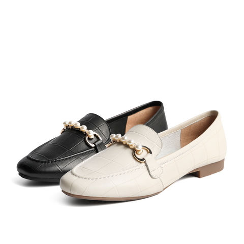 百丽复古乐福鞋2021商场同款石头纹羊皮革珍珠女单鞋W1J1DAA1