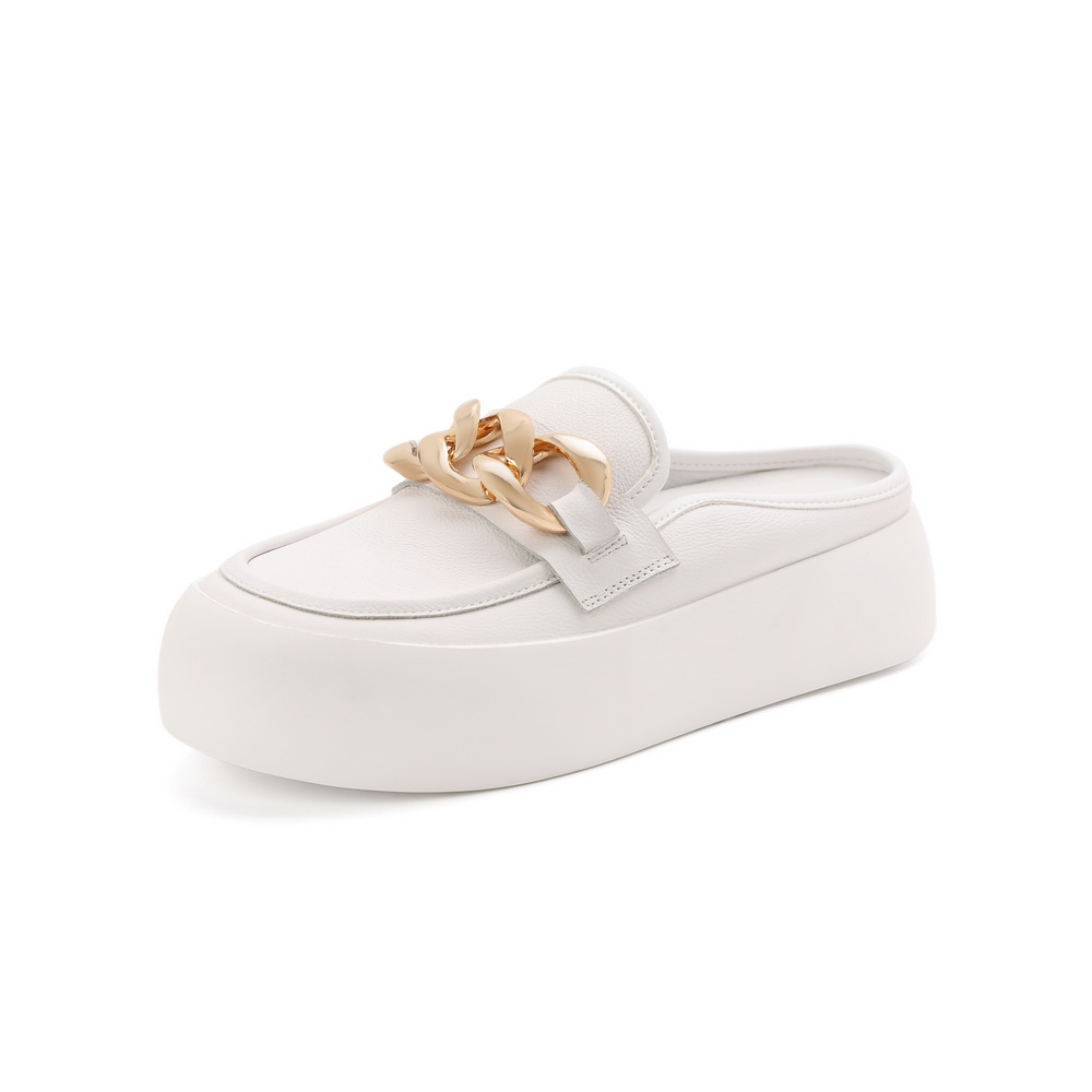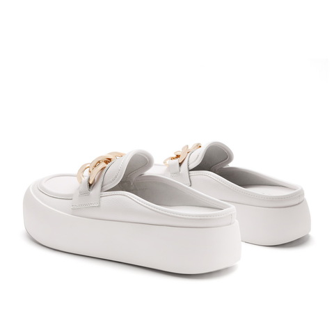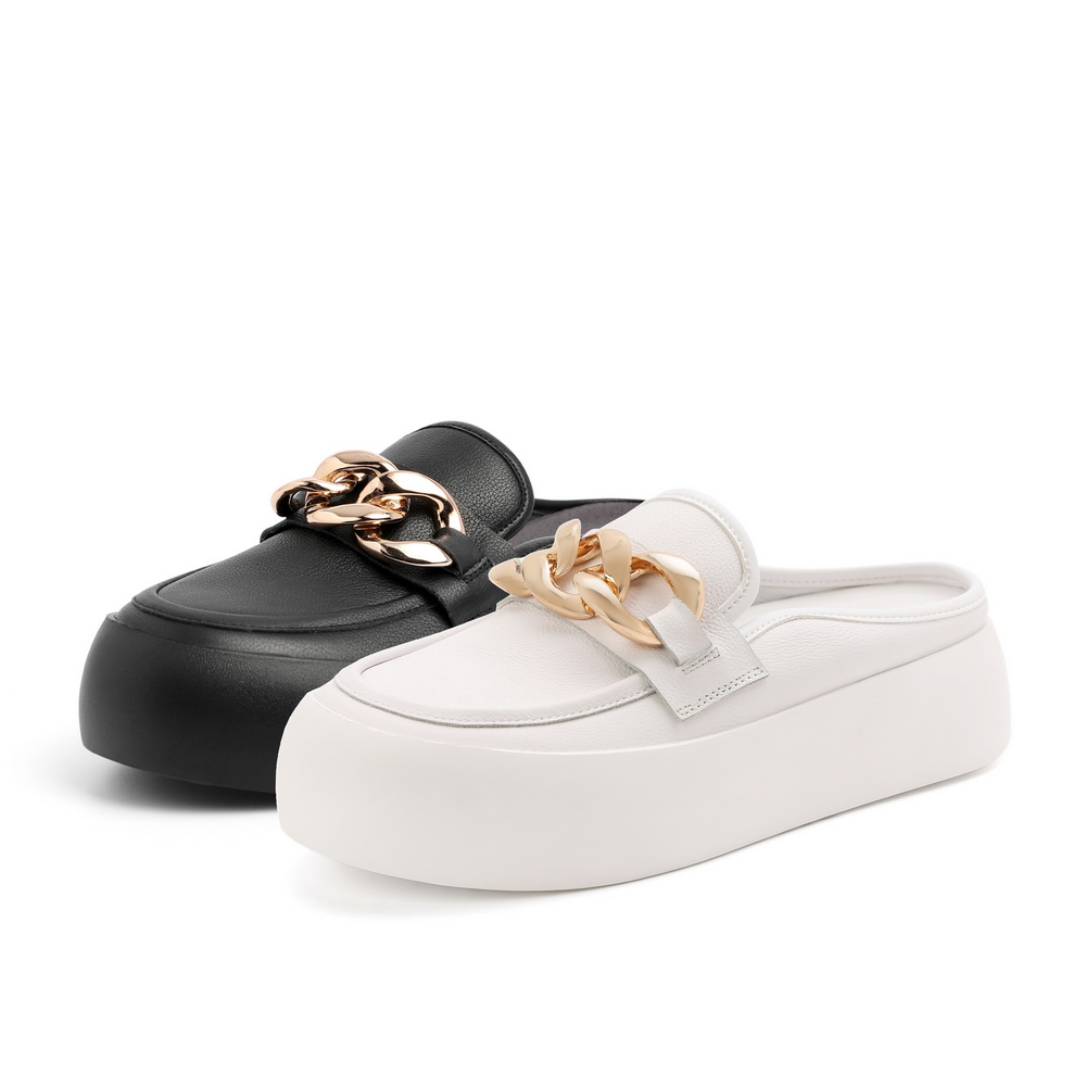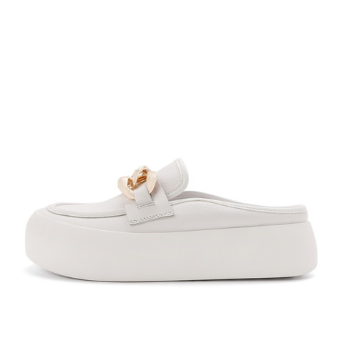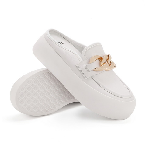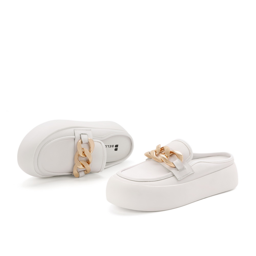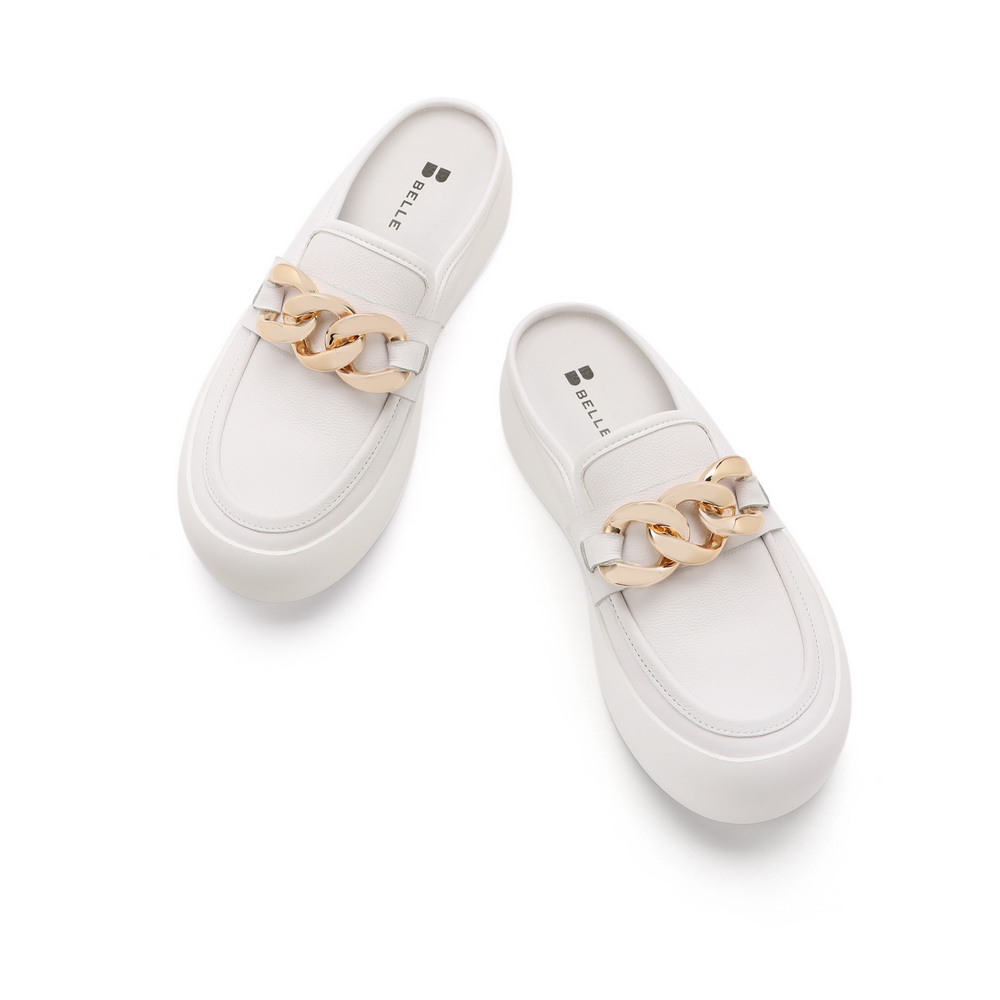 百丽2021秋新商场同款牛皮金属面包鞋穆勒鞋女厚底小白W6U1DCH1