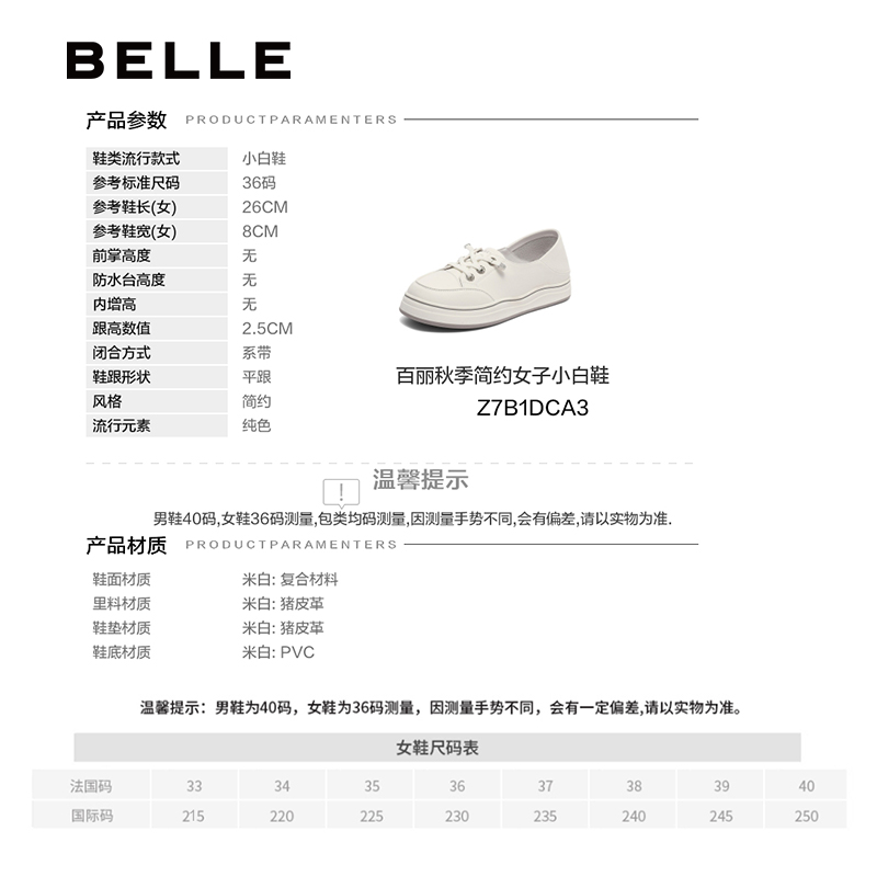 百丽简约护士鞋女2023秋新商场同款套脚小白鞋Z7B1DCA3