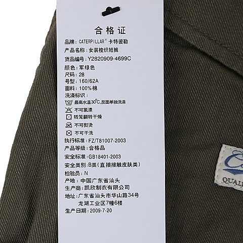 CAT/卡特 专柜同款 女装军绿色梭织短裤Y2820909-4699C