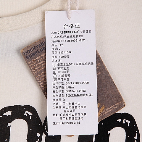 CAT/卡特男装白色短袖T恤Y-2510091-282