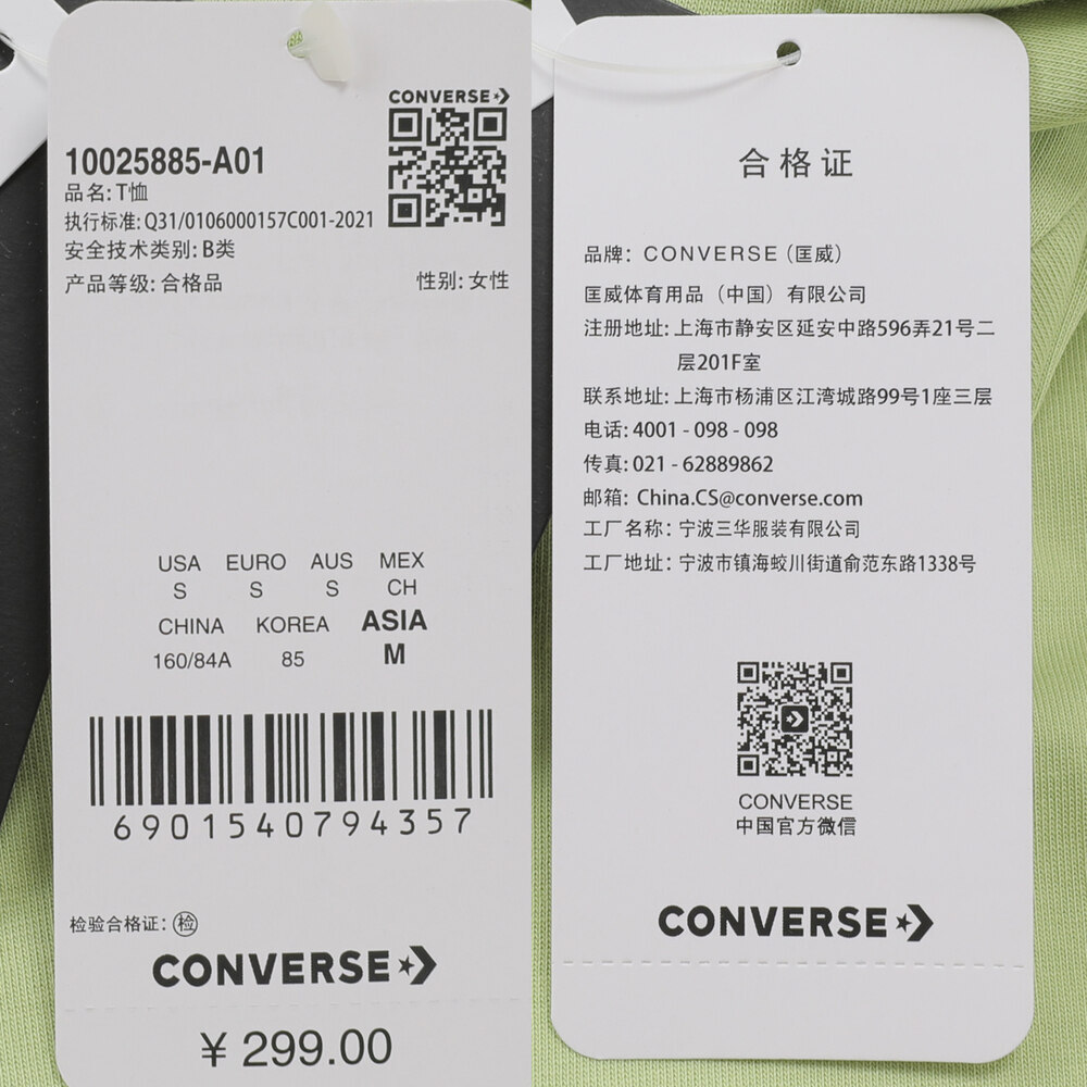 CONVERSE/匡威 2023年新款女子短袖T恤10025885-A01