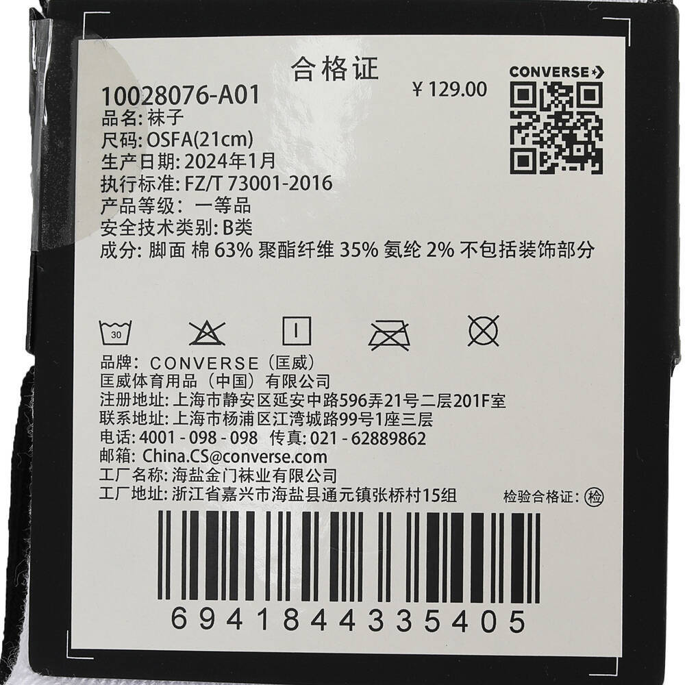 converse匡威2024中性-中袜10028076-A01