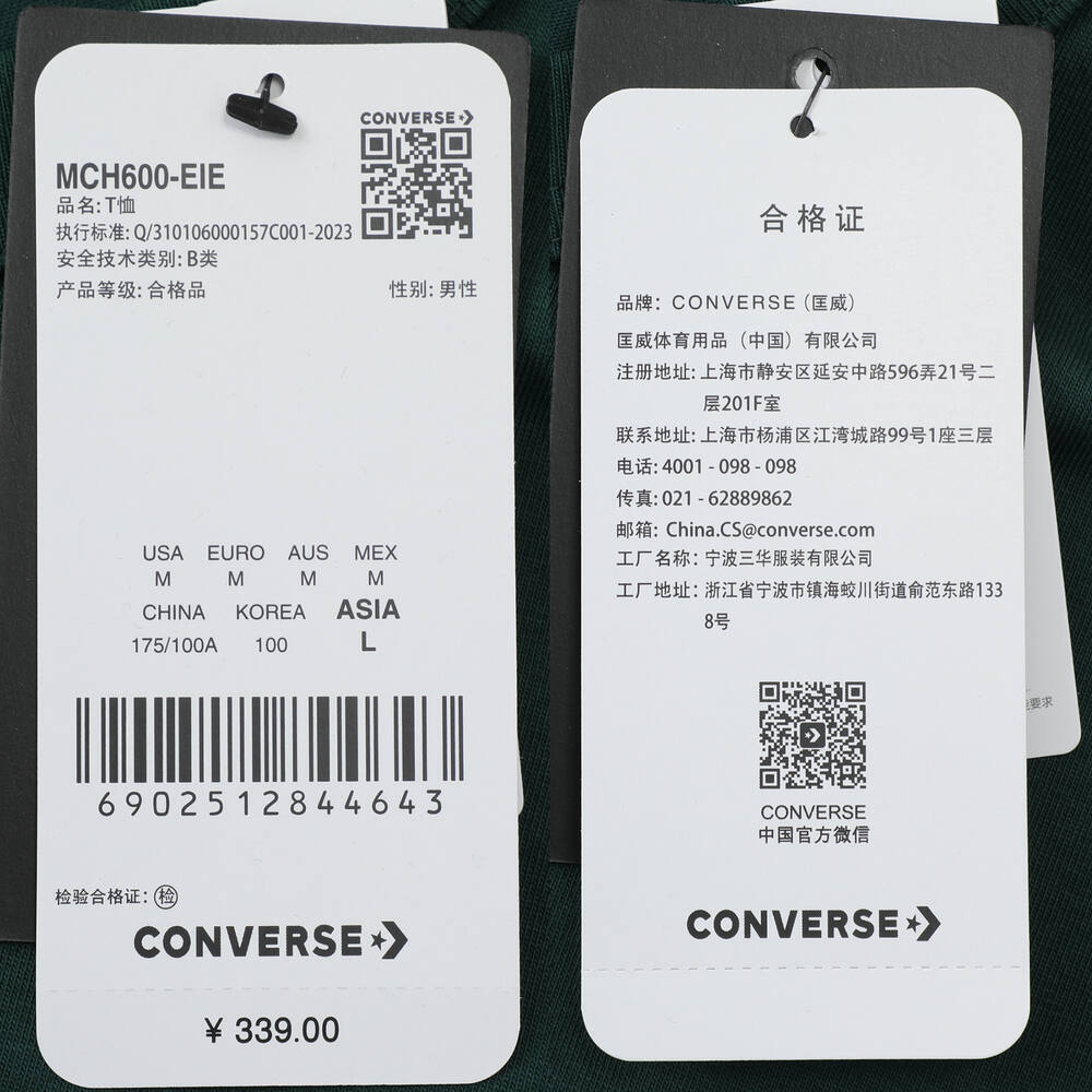 converse匡威2025男子男子-针织无领短T-绿针织无领短TMCH600-EIE