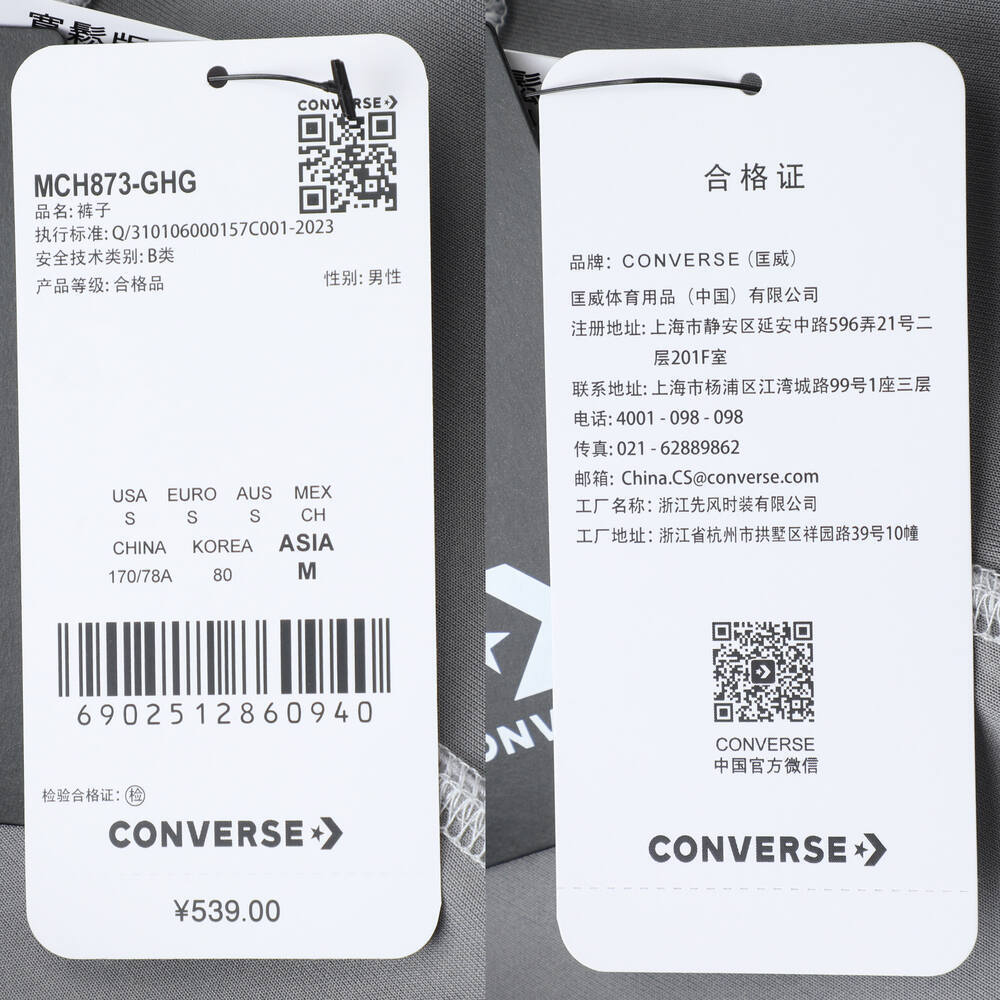 converse匡威2025男子男子-梭织长裤-灰梭织长裤MCH873-GHG