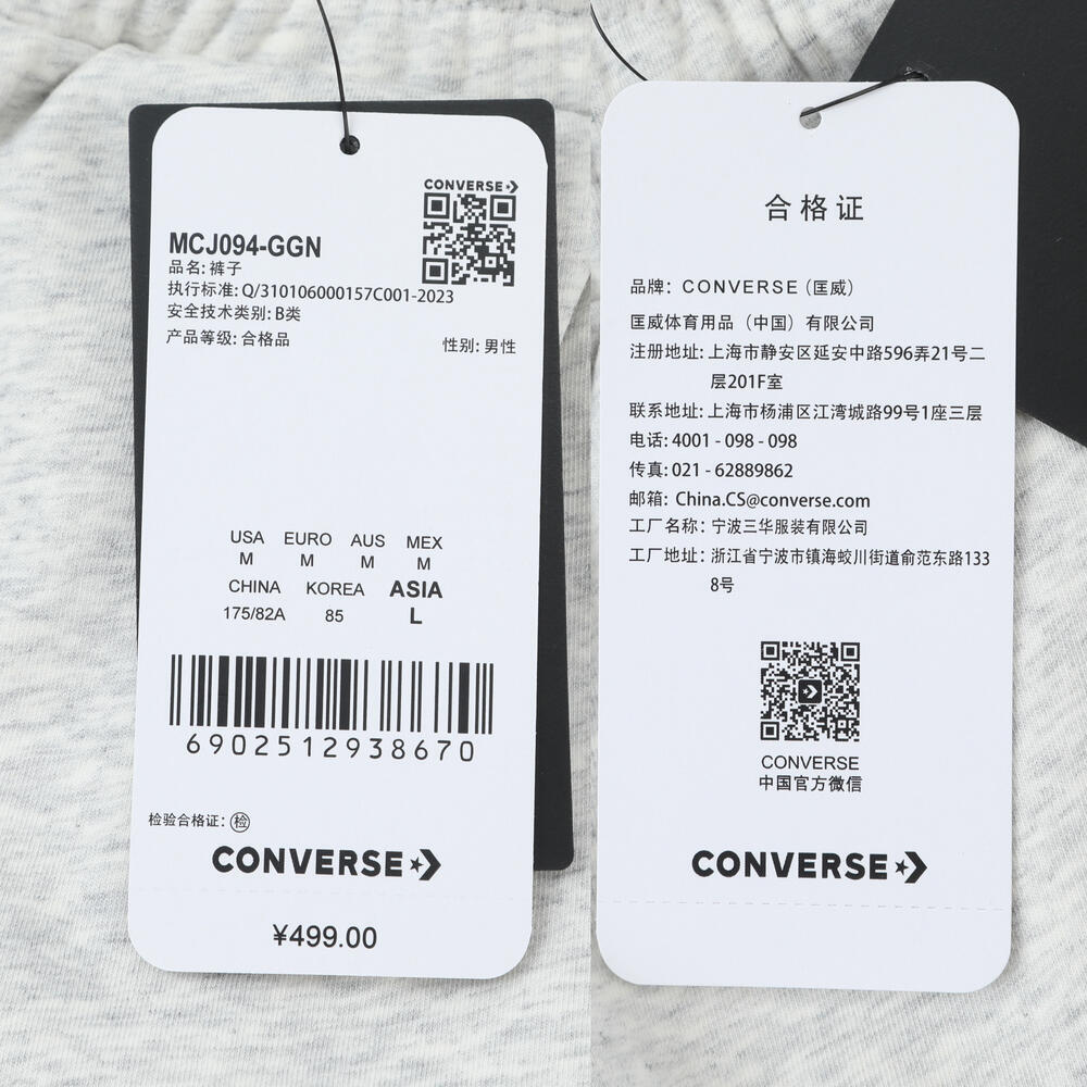 converse匡威2025男子男子-针织长裤-灰针织长裤MCJ094-GGN