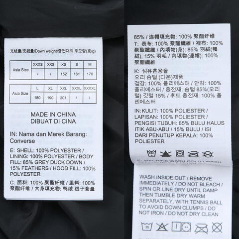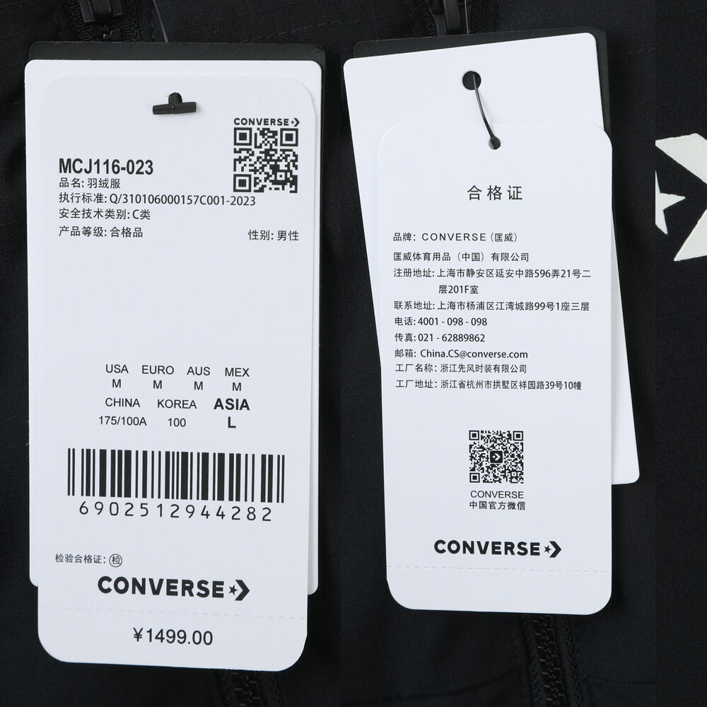 converse匡威2025男子男子-厚羽绒服-短-黑厚羽绒服-短MCJ116-023