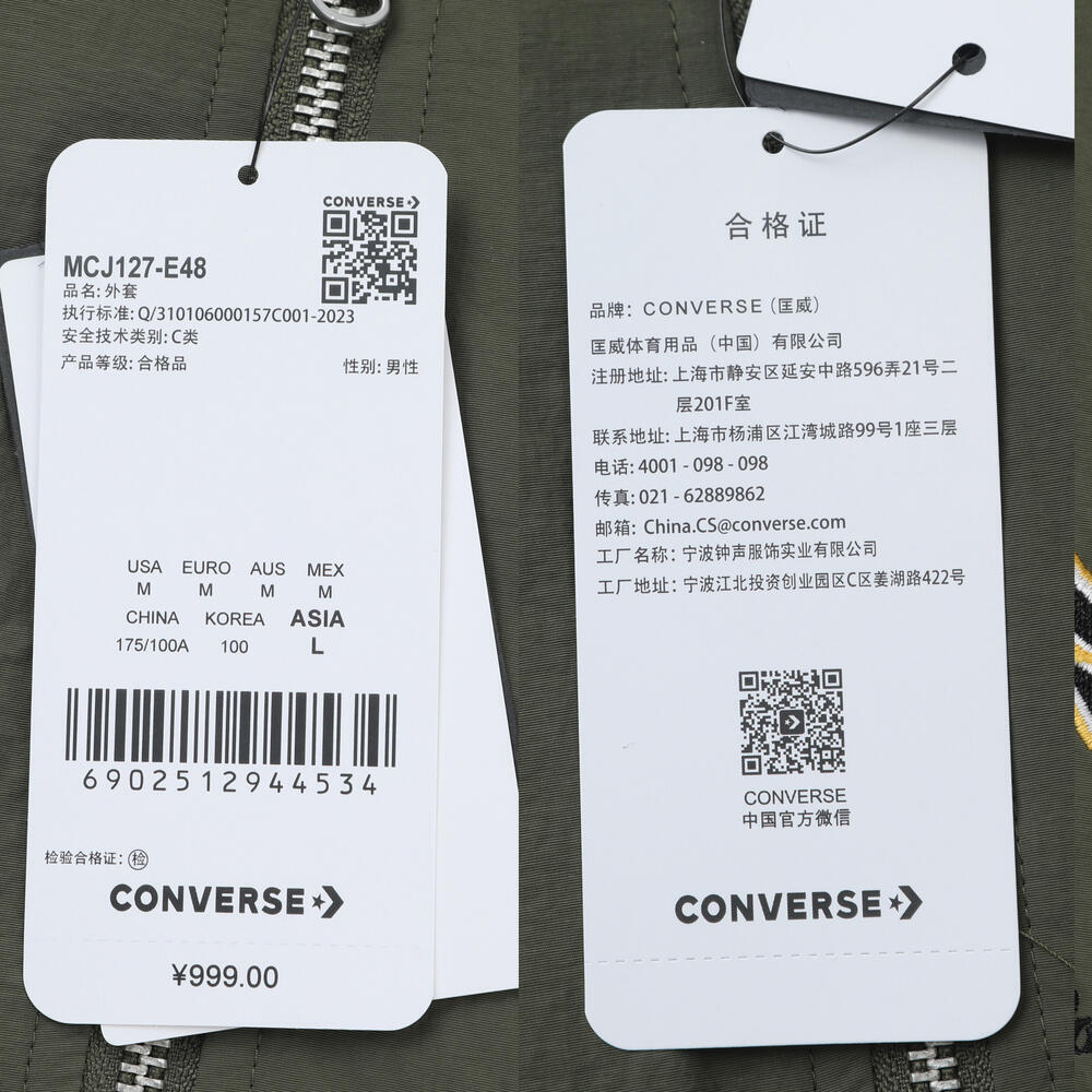 converse匡威2025男子男子-厚棉服-绿厚棉服MCJ127-E48