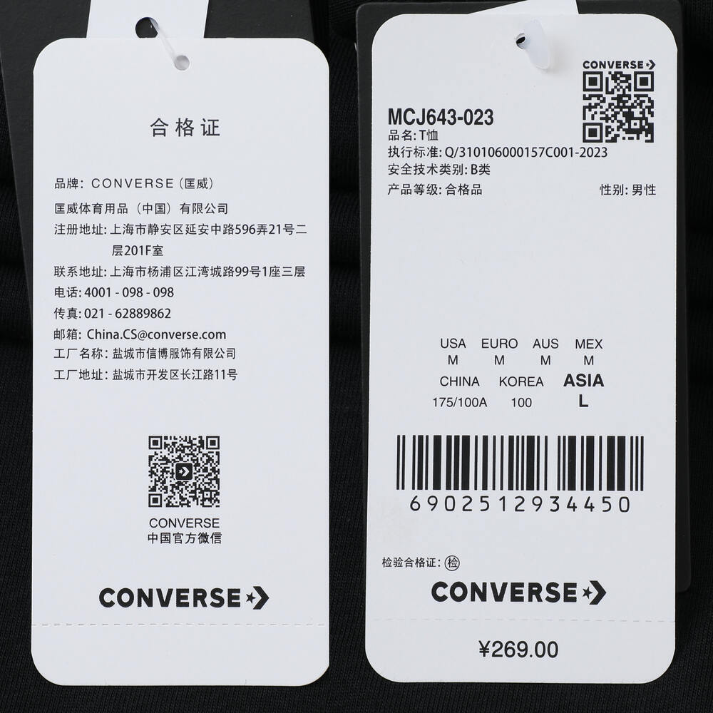 converse匡威2025男子男子-短袖T恤-黑针织无领短TMCJ643-023