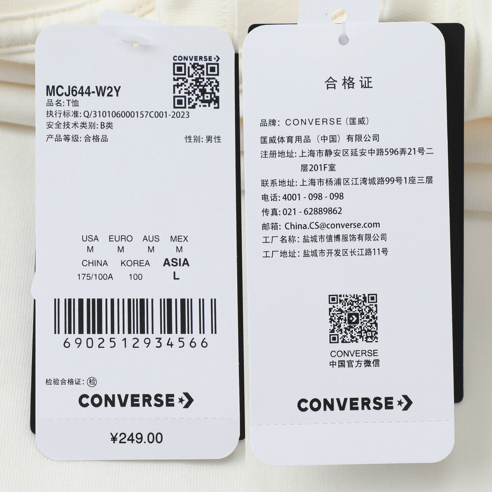 converse匡威2025男子男子-短袖T恤-米针织无领短TMCJ644-W2Y