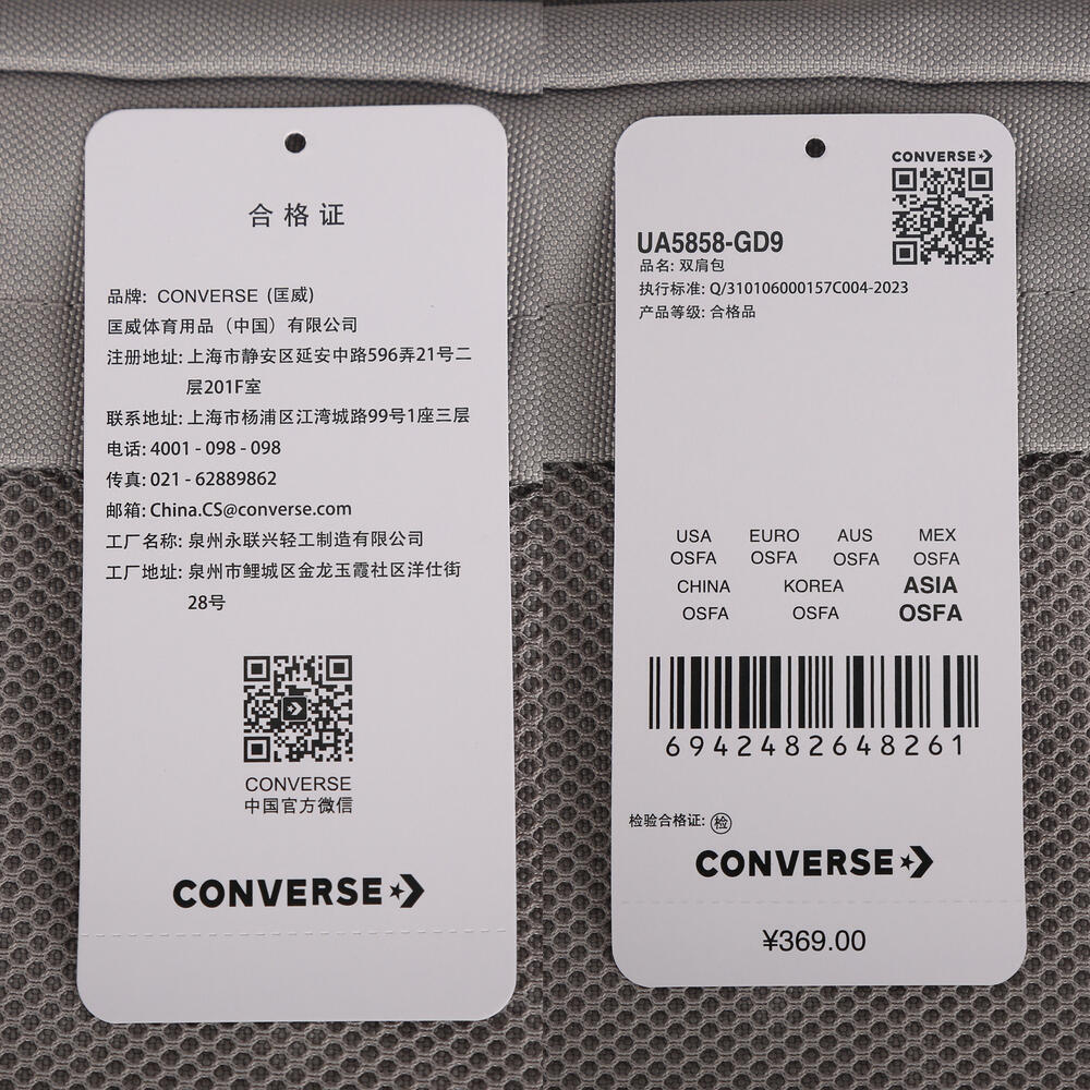 converse匡威2026中性中性-双肩包-灰双肩包UA5858-GD9