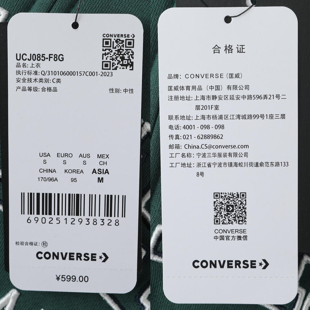 converse匡威2025男子男子-针织连帽外套-绿针织连帽外套UCJ085-F8G