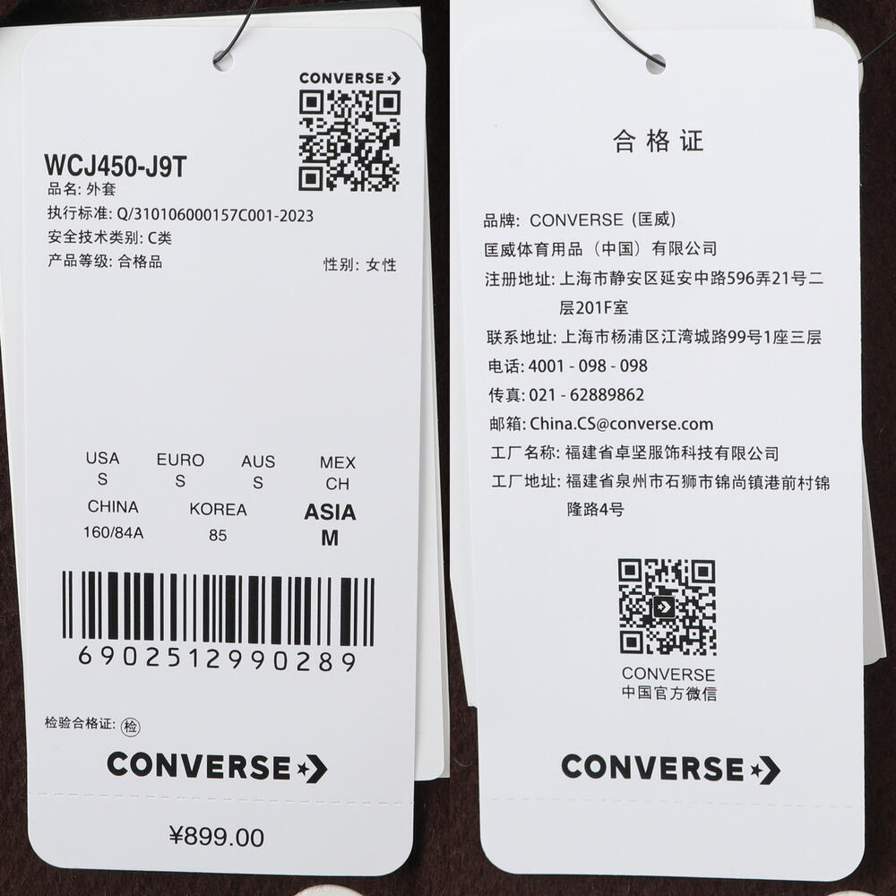 converse匡威2026女子女子-梭织无帽外套-棕梭织无帽外套WCJ450-J9T