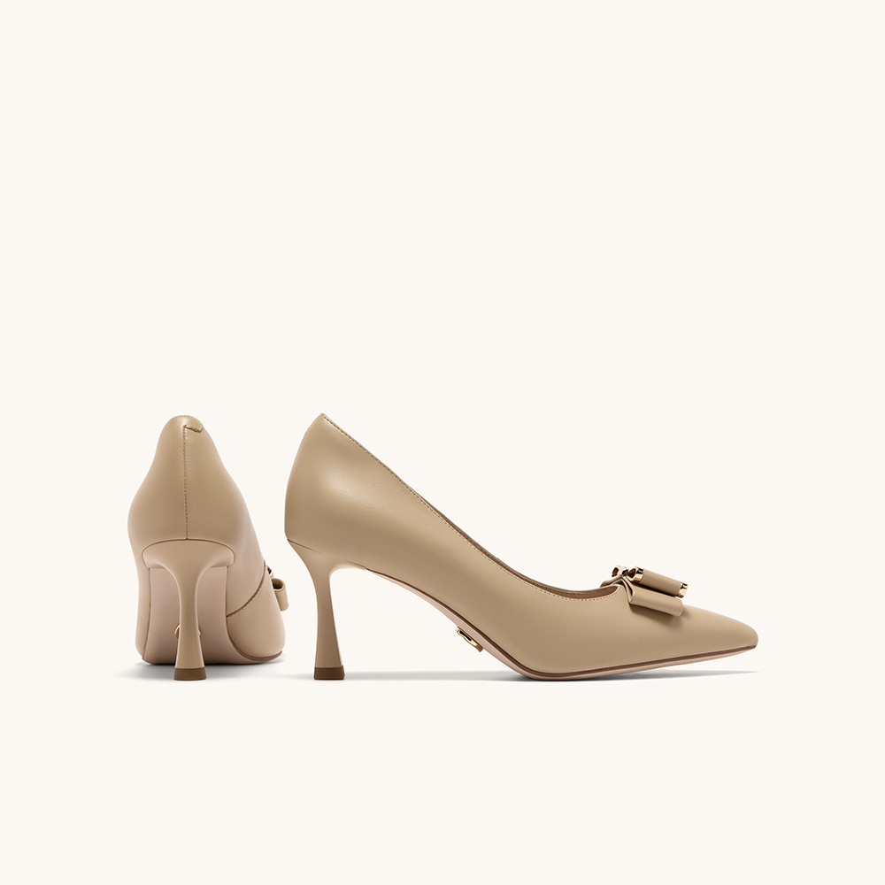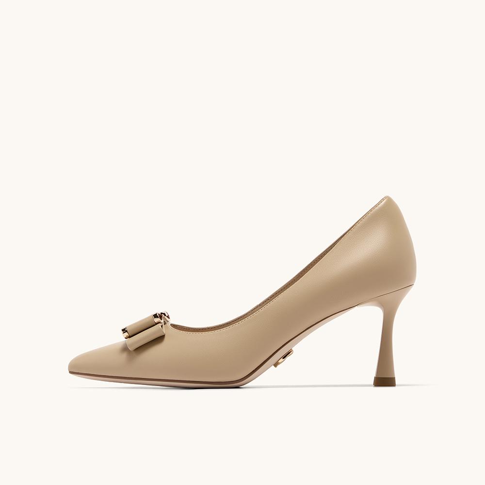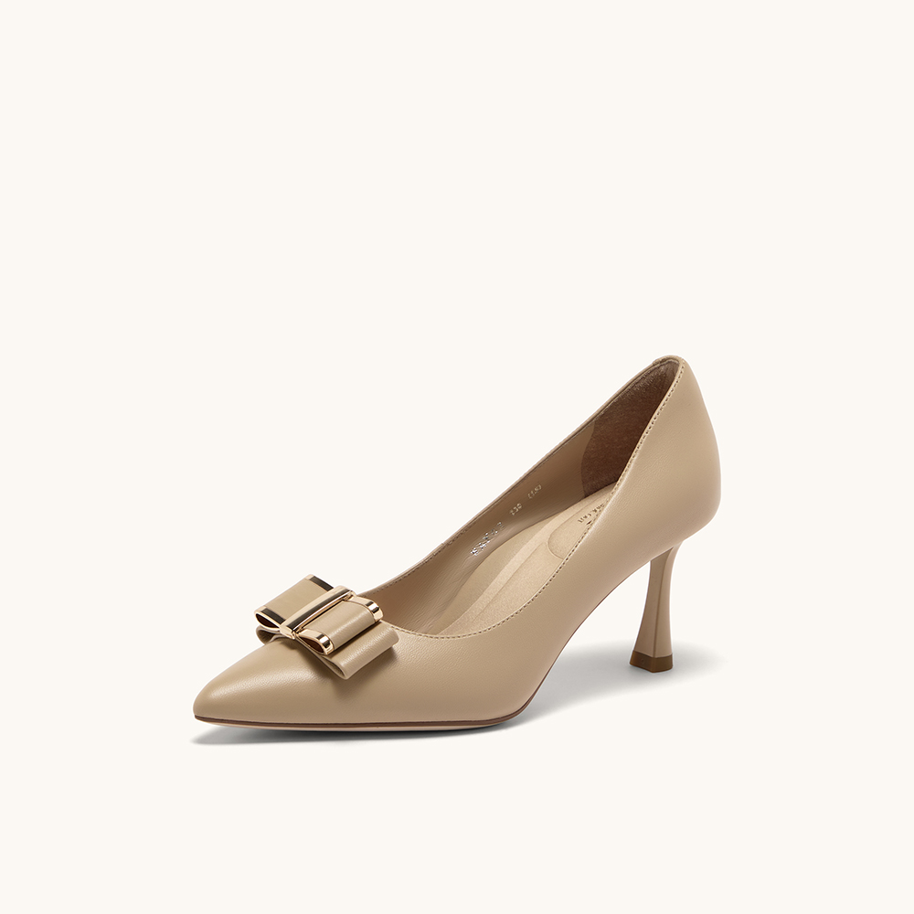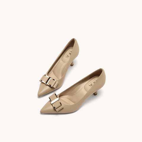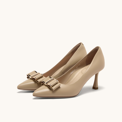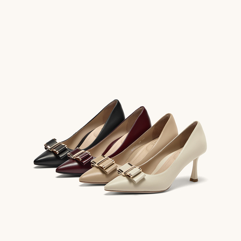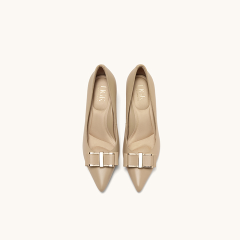 HGK云端蝶舞小蹦床时尚简约金属扣尖头浅口通勤真皮女单鞋WAK02AQ5