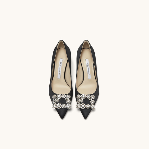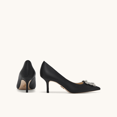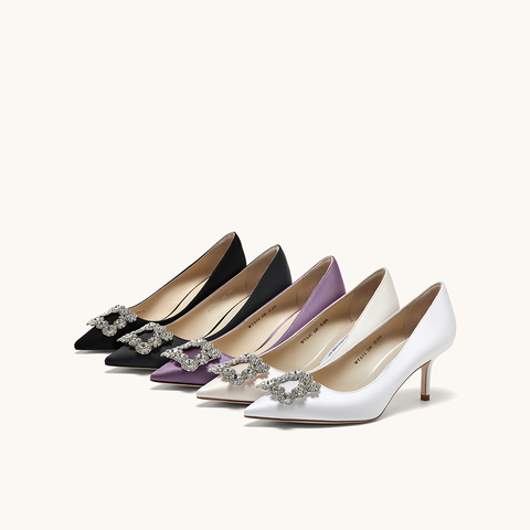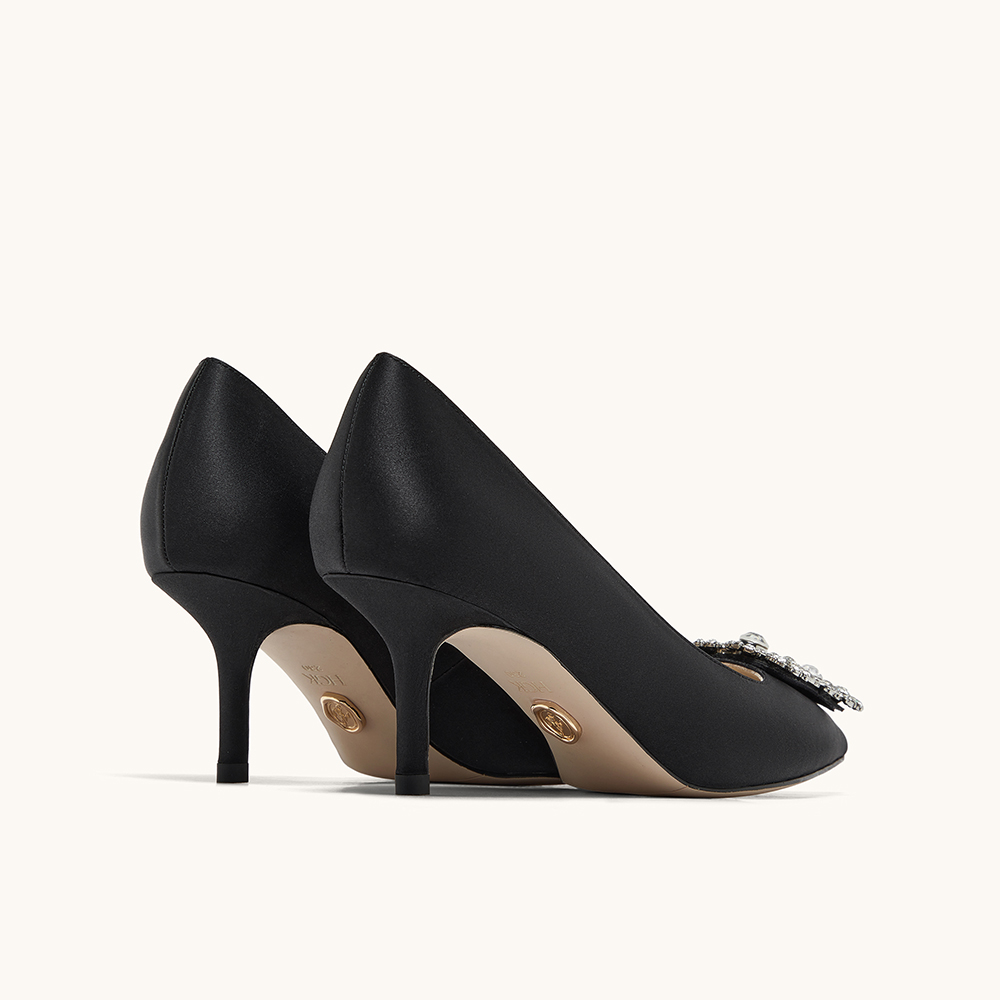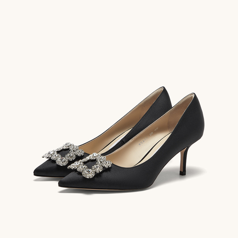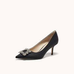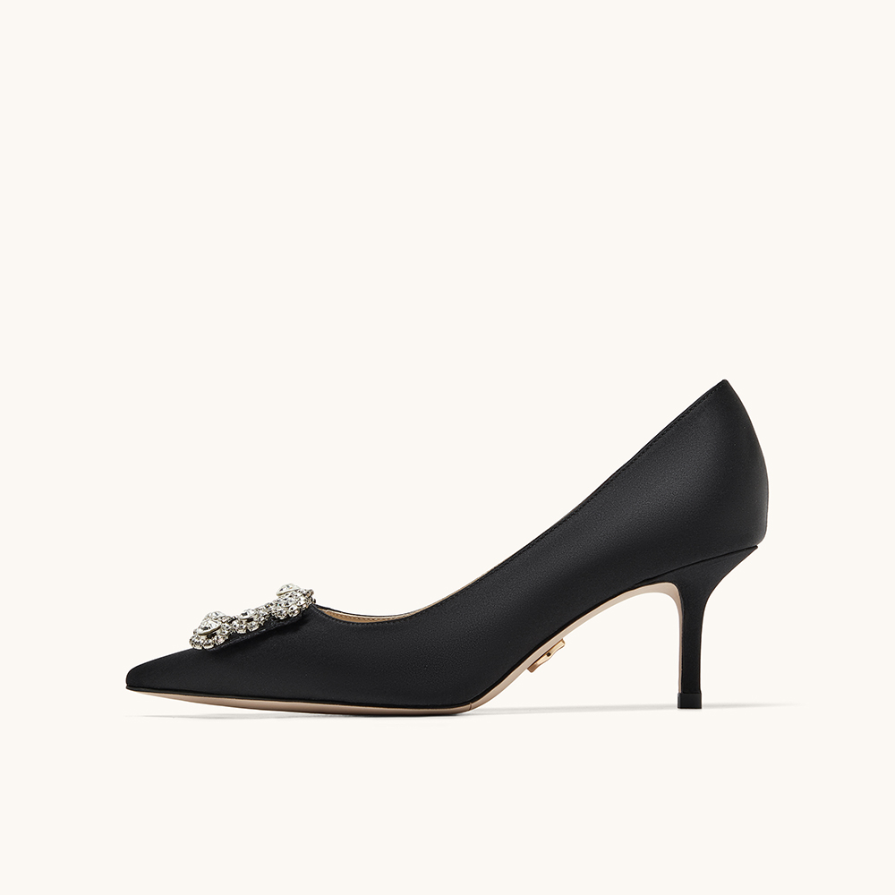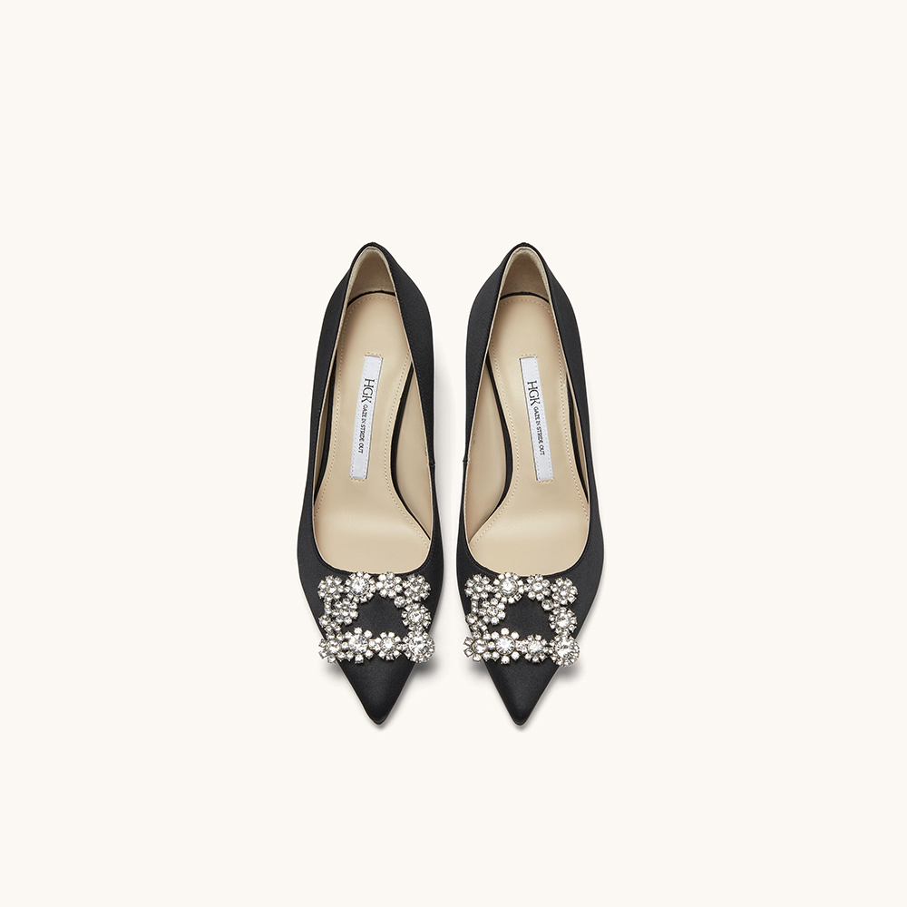 HGK时尚耀星花苞尖头浅口缎面闪钻细跟高跟鞋女鞋WTA01AQ5