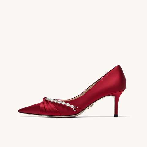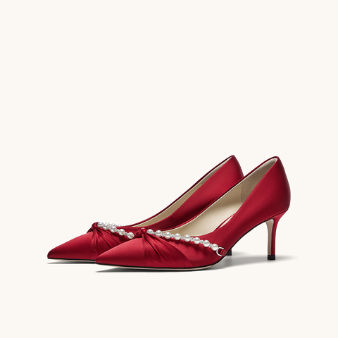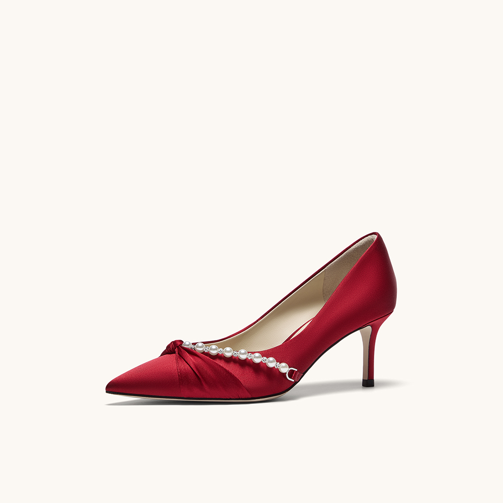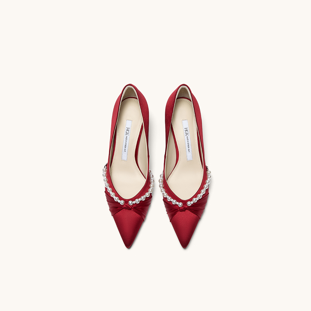 HGK永结同心气质淑女珍珠浪漫浅口舒适高跟女单鞋婚鞋WTH02CQ5