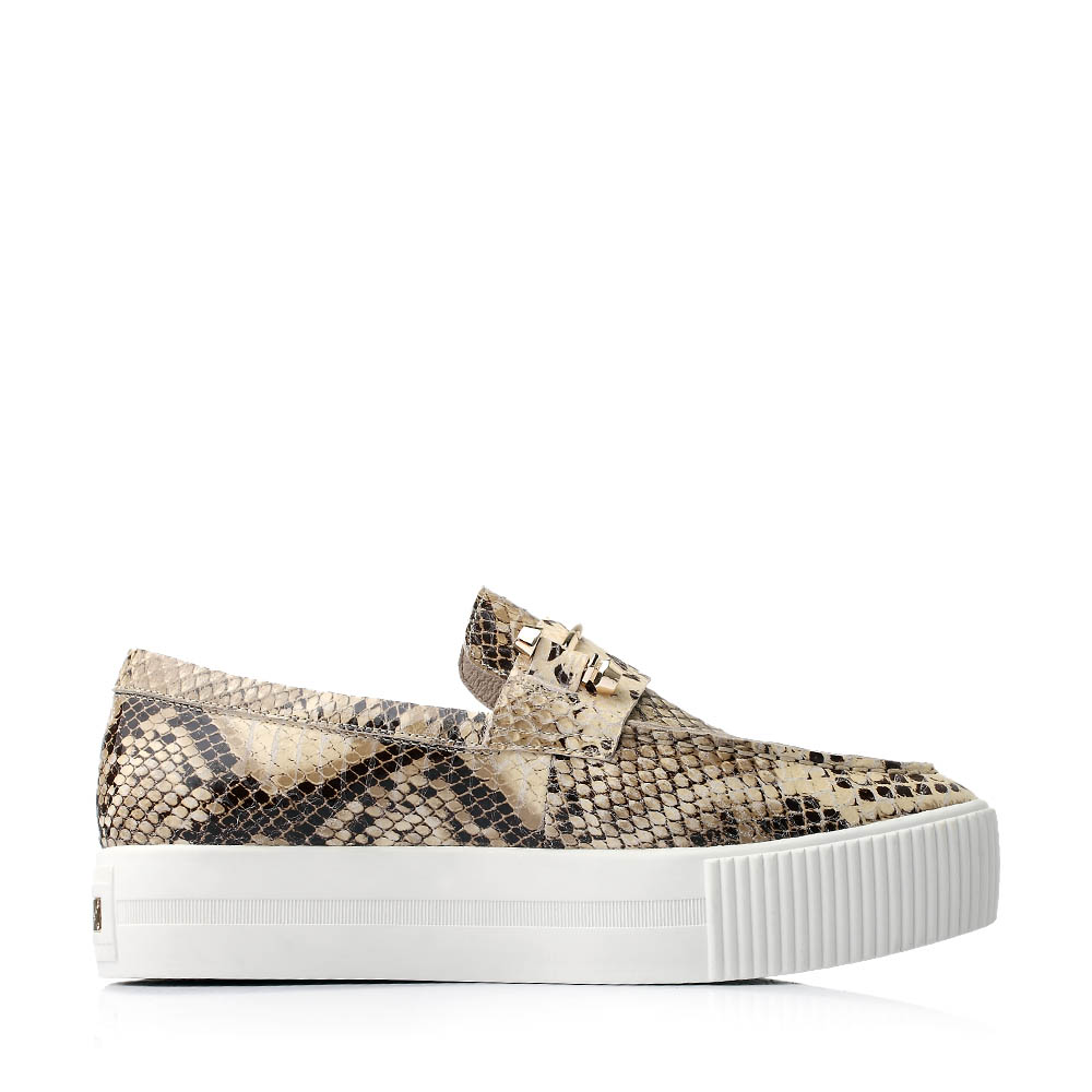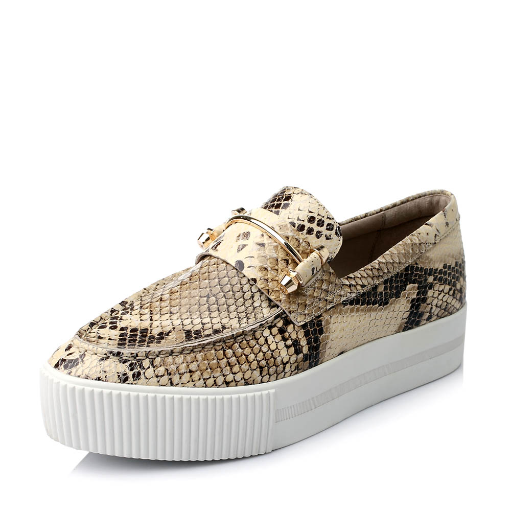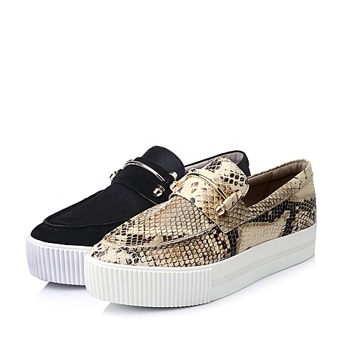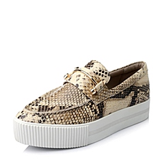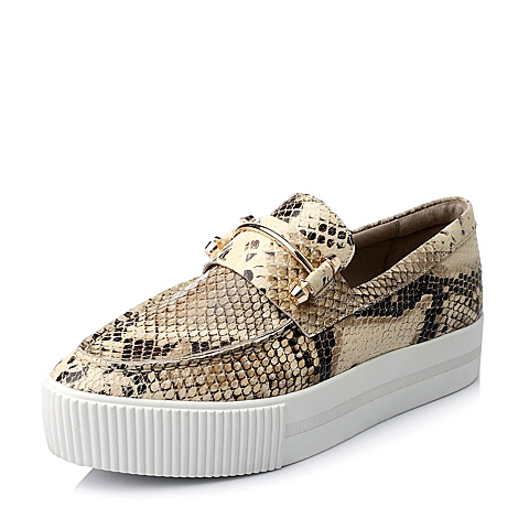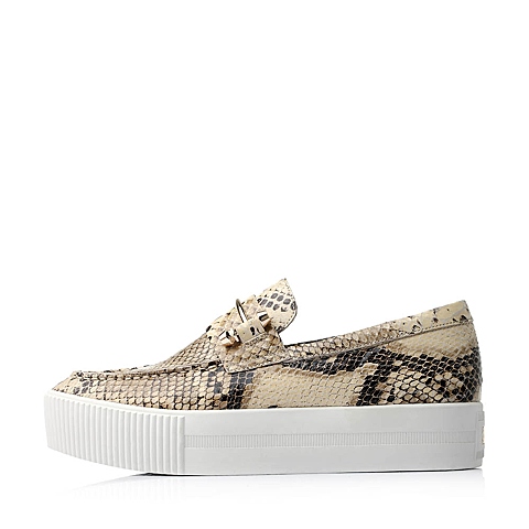 Hush Puppies/暇步士秋季专柜同款米灰色猪皮女鞋厚底乐福鞋HJE22CM5