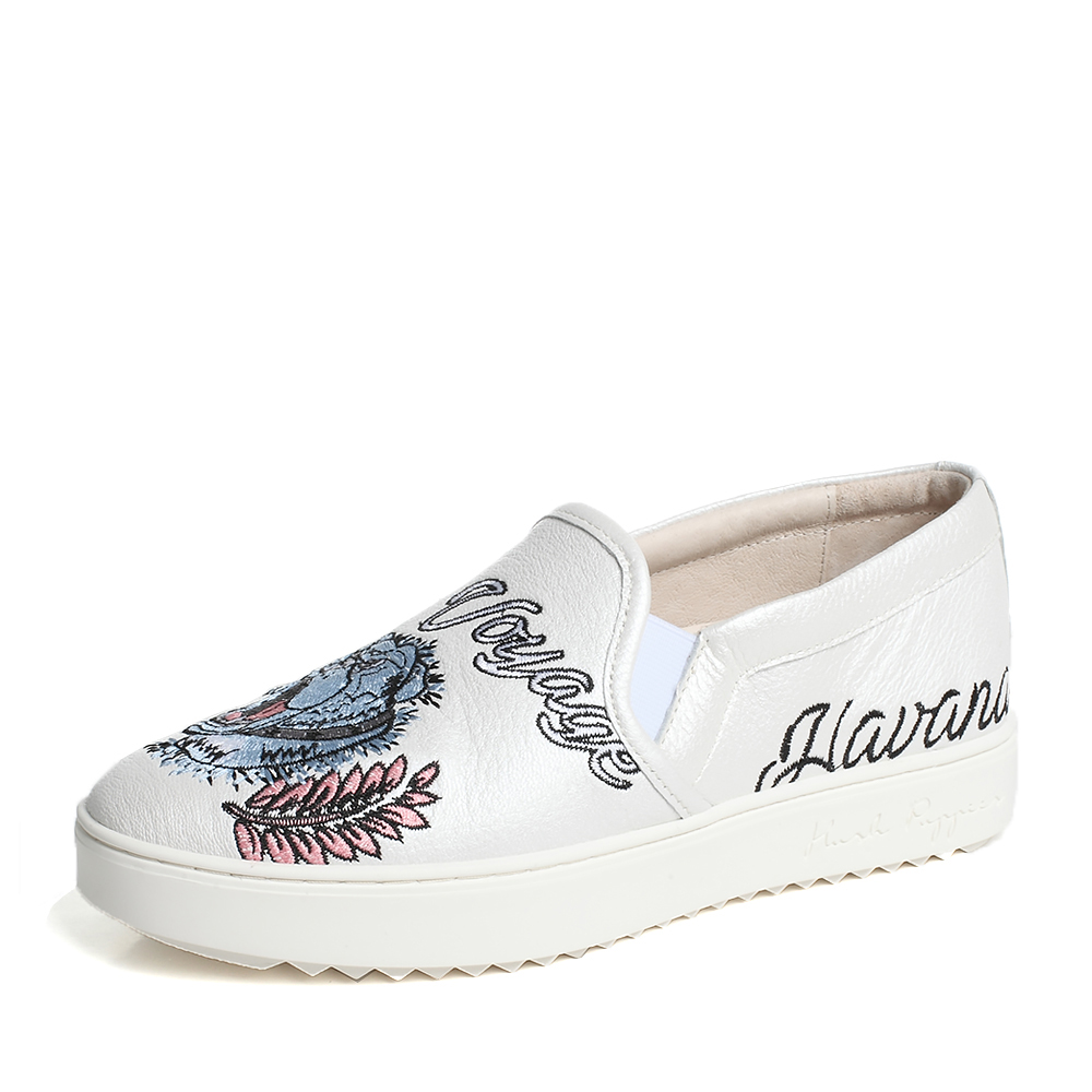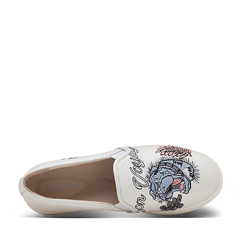 Hush Puppies/暇步士春季专柜同款白色羊皮刺绣青春平跟套脚运动风女休闲鞋板鞋小白鞋HJR33AM7