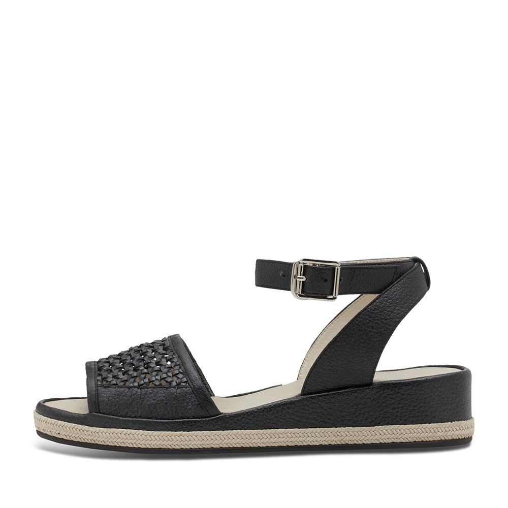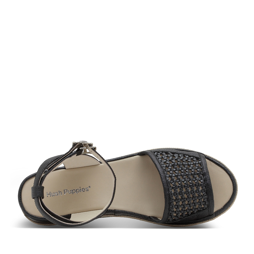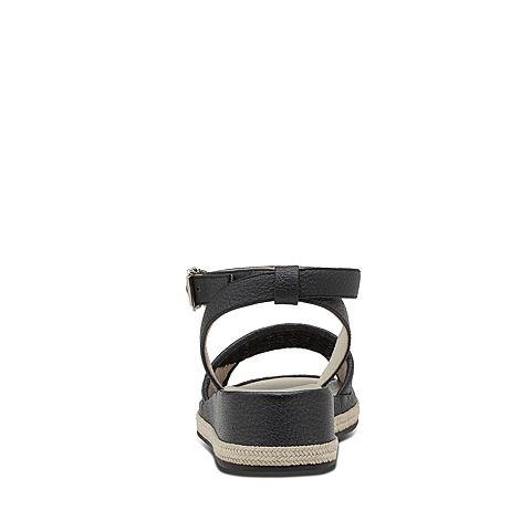 Hush Puppies/暇步士夏季专柜同款黑色人造革/羊皮编织镂空条带坡跟纯色舒适女凉鞋HKX05BL7