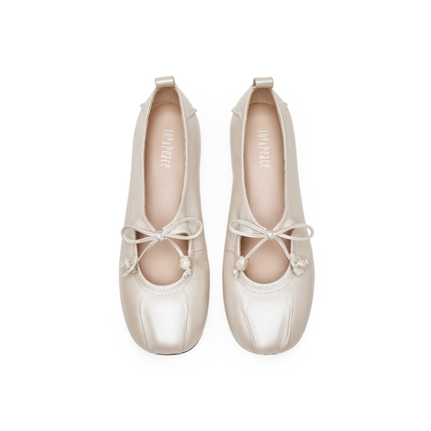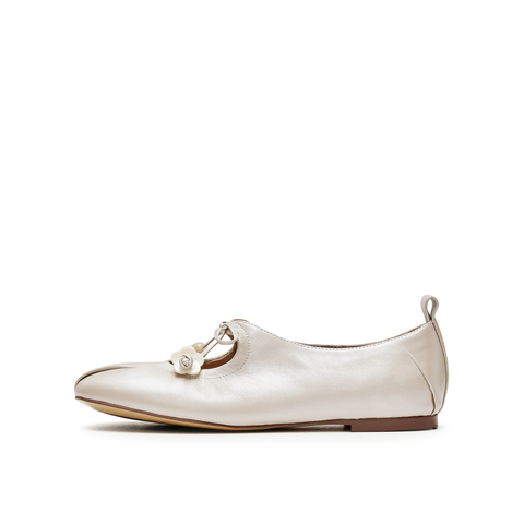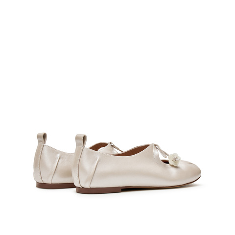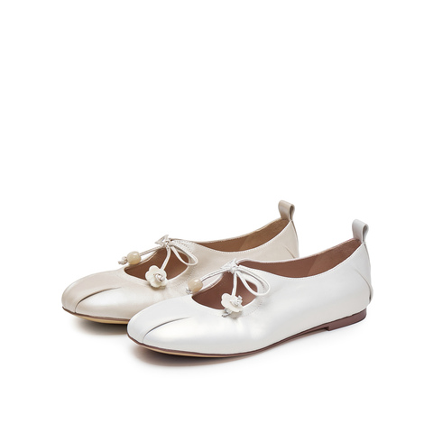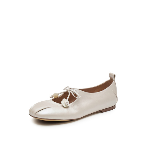 真美诗2025春季新款花朵饰扣蝴蝶结羊皮玛丽珍鞋女10405AQ5