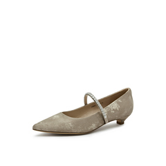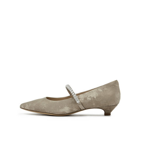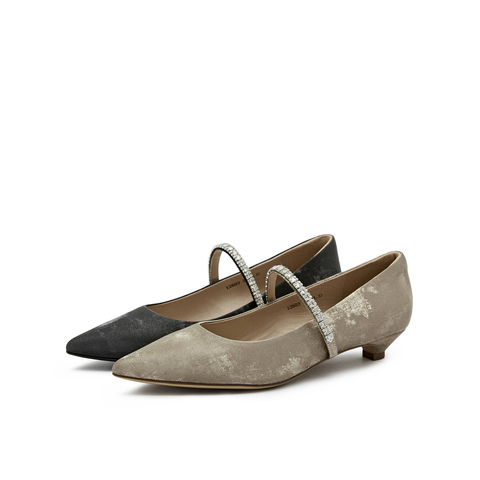 真美诗2025年秋季新款水钻细带装饰牛皮中跟浅口单鞋12603CQ5