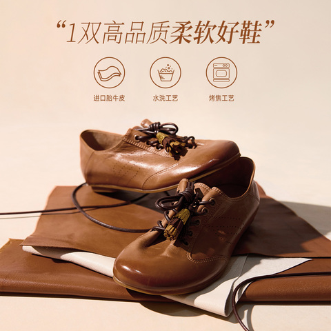真美诗2026年春季新款复古渐变擦色胎牛皮德训鞋17610AM6